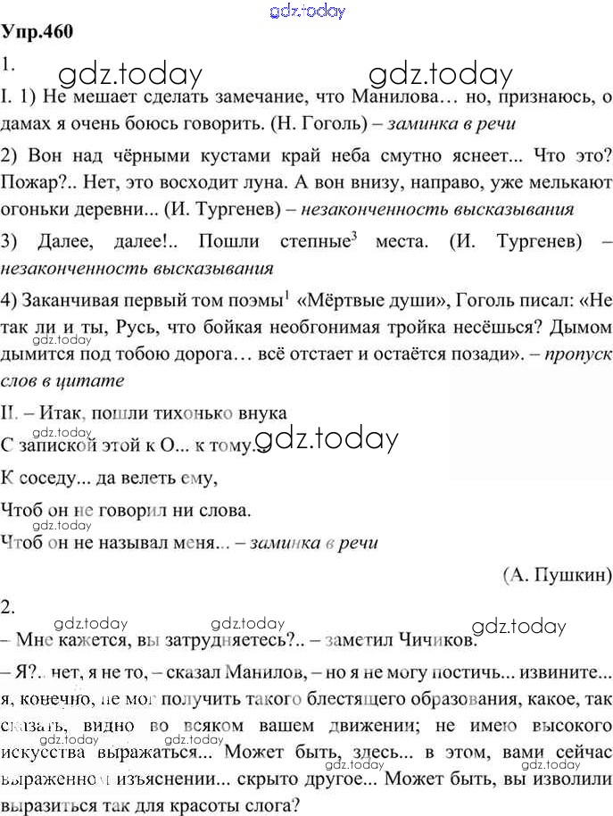 На страницах сайта gdz.today вы найдете учебный и вспомогательный материал, направленный на улучшения знаний школьной программы. ГДЗ - онлайн мир знаний Решение. Упражнения 460 Учебнику по Русскому языку для 9 класса Бархударов, Крючков Просвещение, Просвещение 2011, 2019
