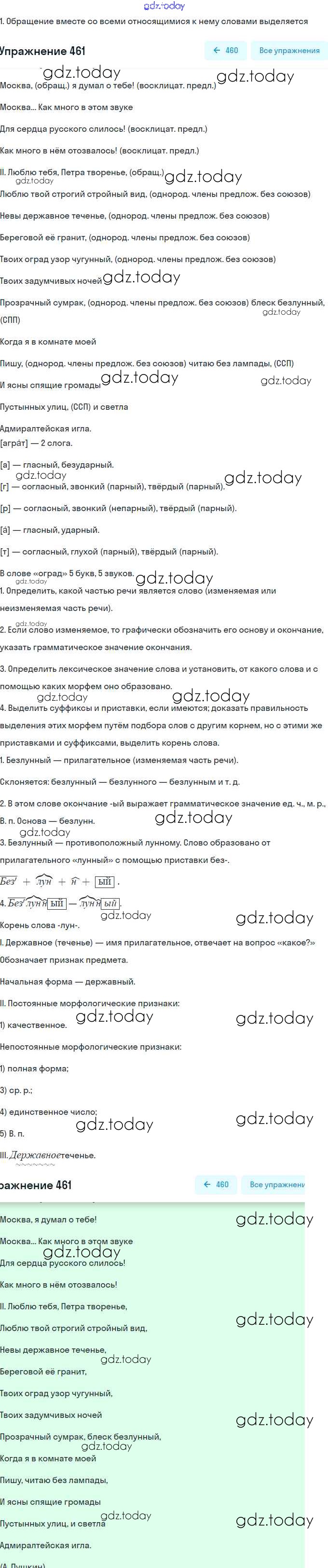 На страницах сайта gdz.today вы найдете учебный и вспомогательный материал, направленный на улучшения знаний школьной программы. ГДЗ - онлайн мир знаний Решение. Упражнения 461 Учебнику по Русскому языку для 9 класса Бархударов, Крючков Просвещение, Просвещение 2011, 2019
