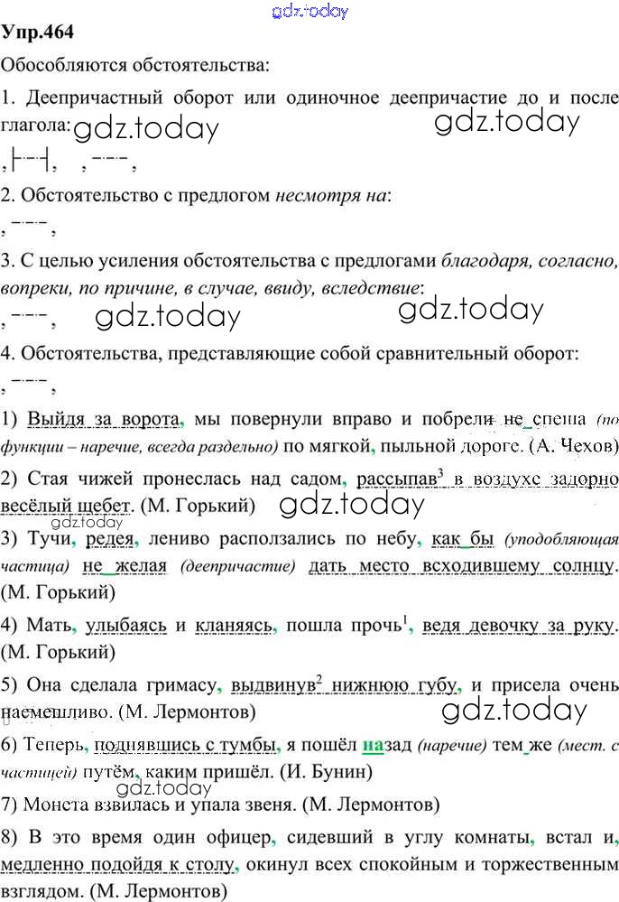 На страницах сайта gdz.today вы найдете учебный и вспомогательный материал, направленный на улучшения знаний школьной программы. ГДЗ - онлайн мир знаний Решение. Упражнения 464 Учебнику по Русскому языку для 9 класса Бархударов, Крючков Просвещение, Просвещение 2011, 2019