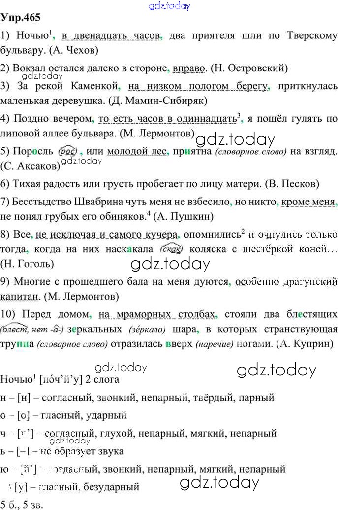 На страницах сайта gdz.today вы найдете учебный и вспомогательный материал, направленный на улучшения знаний школьной программы. ГДЗ - онлайн мир знаний Решение. Упражнения 465 Учебнику по Русскому языку для 9 класса Бархударов, Крючков Просвещение, Просвещение 2011, 2019