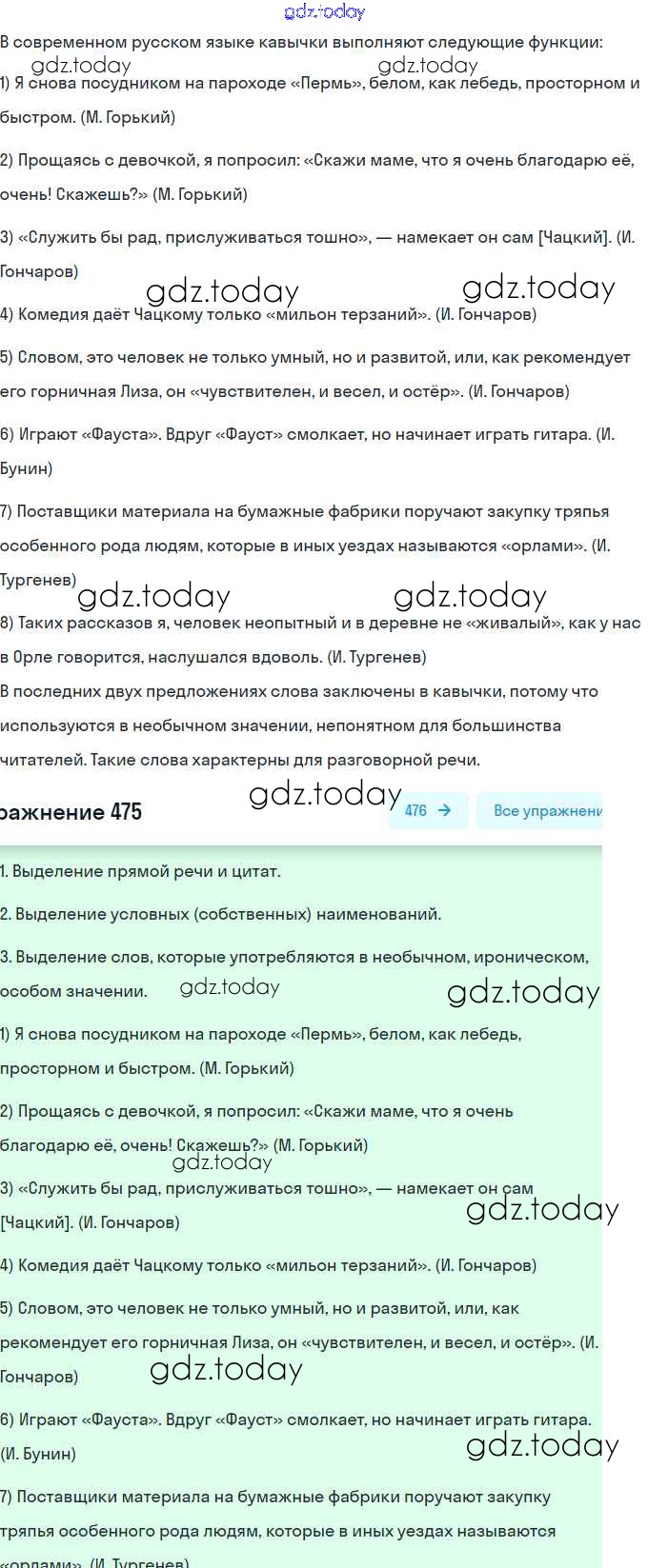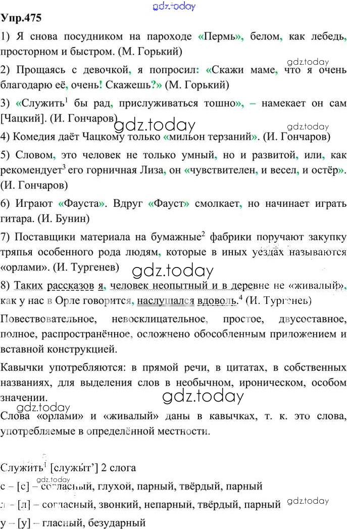 На страницах сайта gdz.today вы найдете учебный и вспомогательный материал, направленный на улучшения знаний школьной программы. ГДЗ - онлайн мир знаний Решение. Упражнения 475 Учебнику по Русскому языку для 9 класса Бархударов, Крючков Просвещение, Просвещение 2011, 2019