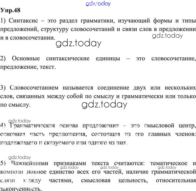 На страницах сайта gdz.today вы найдете учебный и вспомогательный материал, направленный на улучшения знаний школьной программы. ГДЗ - онлайн мир знаний Решение. Упражнения 48 Учебнику по Русскому языку для 9 класса Бархударов, Крючков Просвещение, Просвещение 2011, 2019