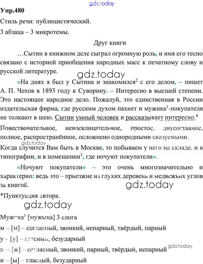 На страницах сайта gdz.today вы найдете учебный и вспомогательный материал, направленный на улучшения знаний школьной программы. ГДЗ - онлайн мир знаний Решение. Упражнения 480 Учебнику по Русскому языку для 9 класса Бархударов, Крючков Просвещение, Просвещение 2011, 2019