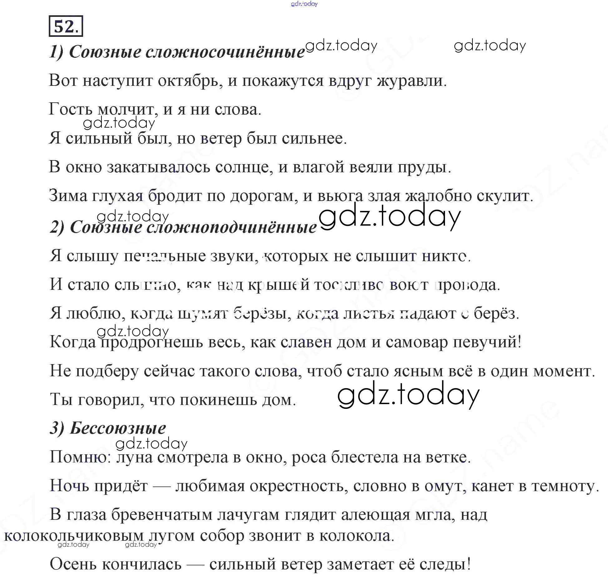 На страницах сайта gdz.today вы найдете учебный и вспомогательный материал, направленный на улучшения знаний школьной программы. ГДЗ - онлайн мир знаний Решение. Упражнения 52 Учебнику по Русскому языку для 9 класса Бархударов, Крючков Просвещение, Просвещение 2011, 2019