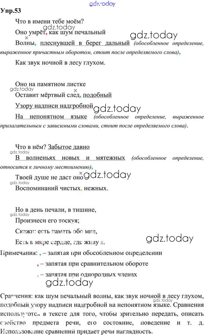 На страницах сайта gdz.today вы найдете учебный и вспомогательный материал, направленный на улучшения знаний школьной программы. ГДЗ - онлайн мир знаний Решение. Упражнения 53 Учебнику по Русскому языку для 9 класса Бархударов, Крючков Просвещение, Просвещение 2011, 2019