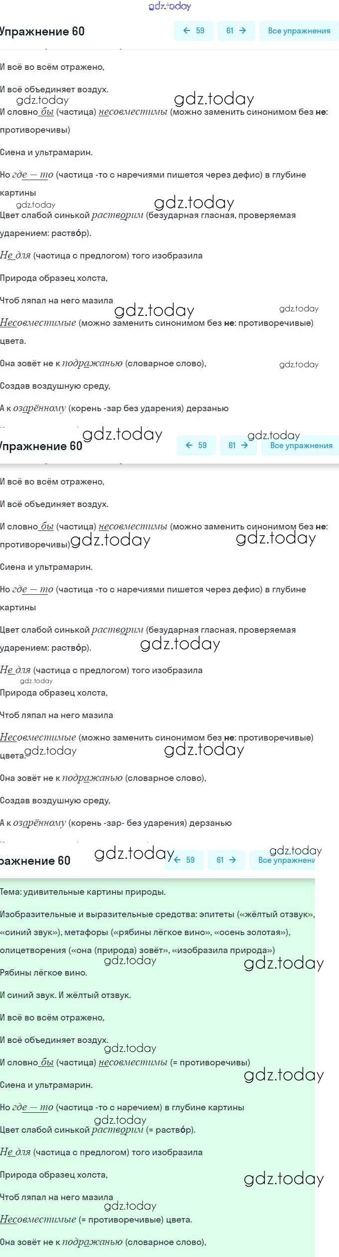 На страницах сайта gdz.today вы найдете учебный и вспомогательный материал, направленный на улучшения знаний школьной программы. ГДЗ - онлайн мир знаний Решение. Упражнения 60 Учебнику по Русскому языку для 9 класса Бархударов, Крючков Просвещение, Просвещение 2011, 2019