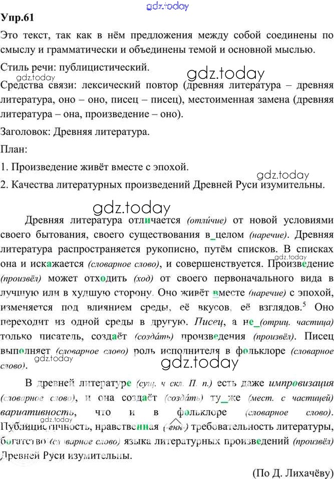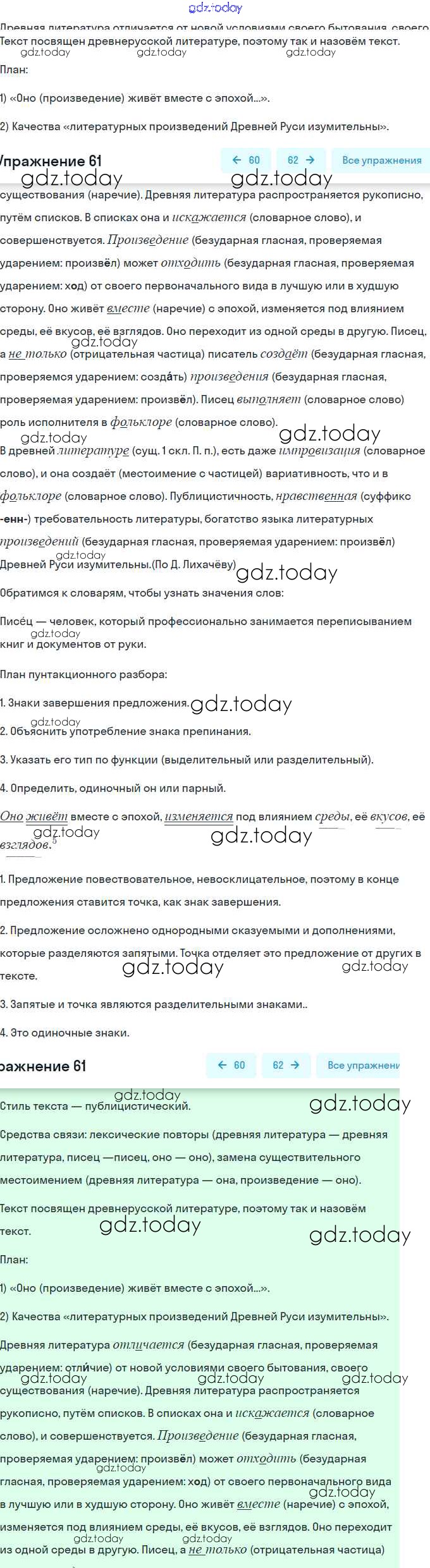 На страницах сайта gdz.today вы найдете учебный и вспомогательный материал, направленный на улучшения знаний школьной программы. ГДЗ - онлайн мир знаний Решение. Упражнения 61 Учебнику по Русскому языку для 9 класса Бархударов, Крючков Просвещение, Просвещение 2011, 2019