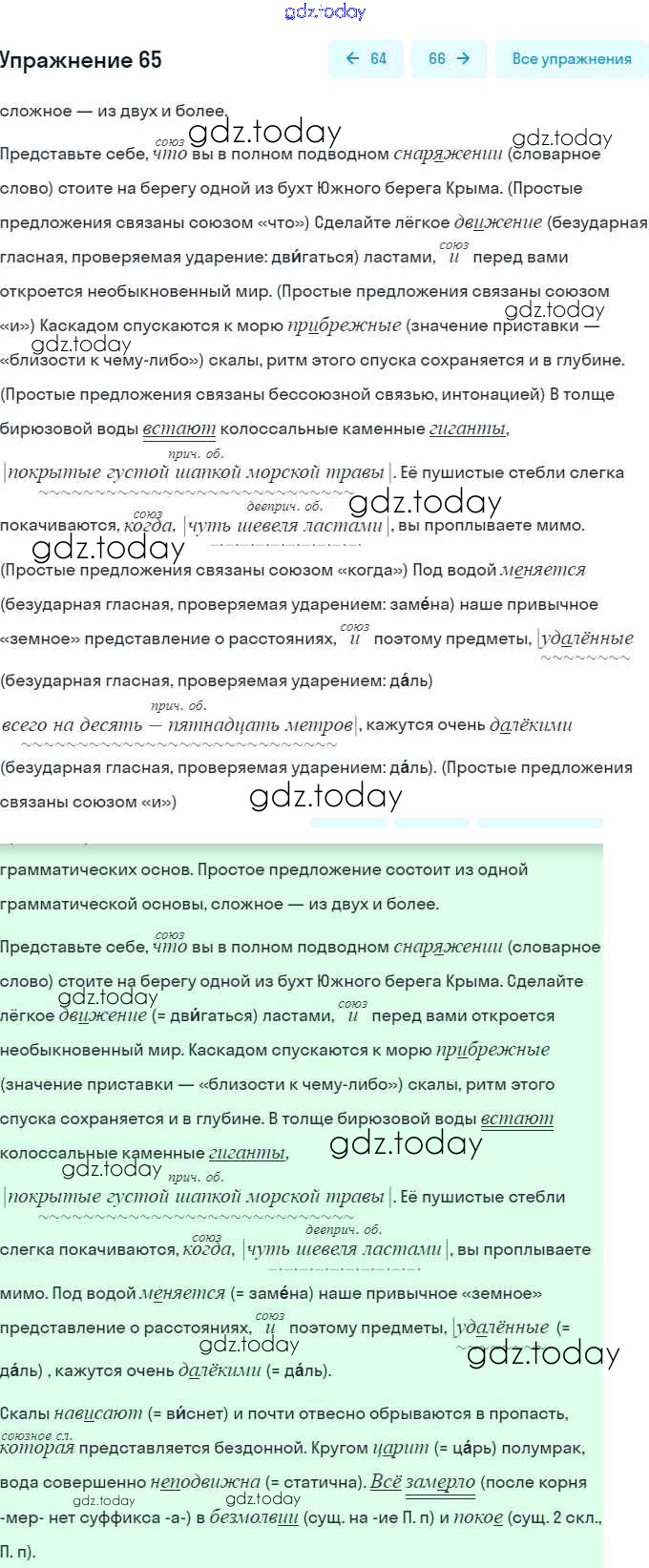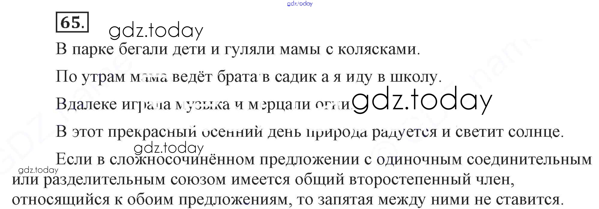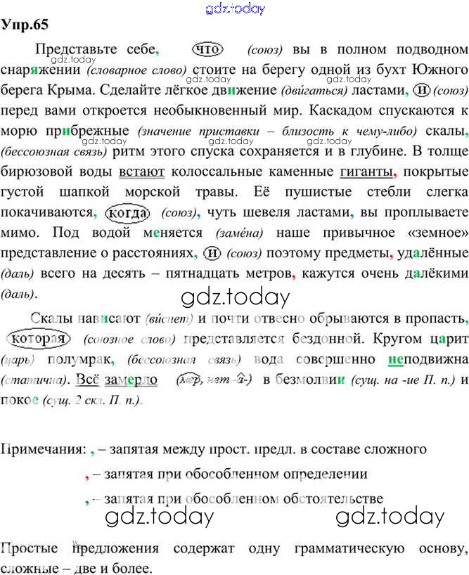 На страницах сайта gdz.today вы найдете учебный и вспомогательный материал, направленный на улучшения знаний школьной программы. ГДЗ - онлайн мир знаний Решение. Упражнения 65 Учебнику по Русскому языку для 9 класса Бархударов, Крючков Просвещение, Просвещение 2011, 2019