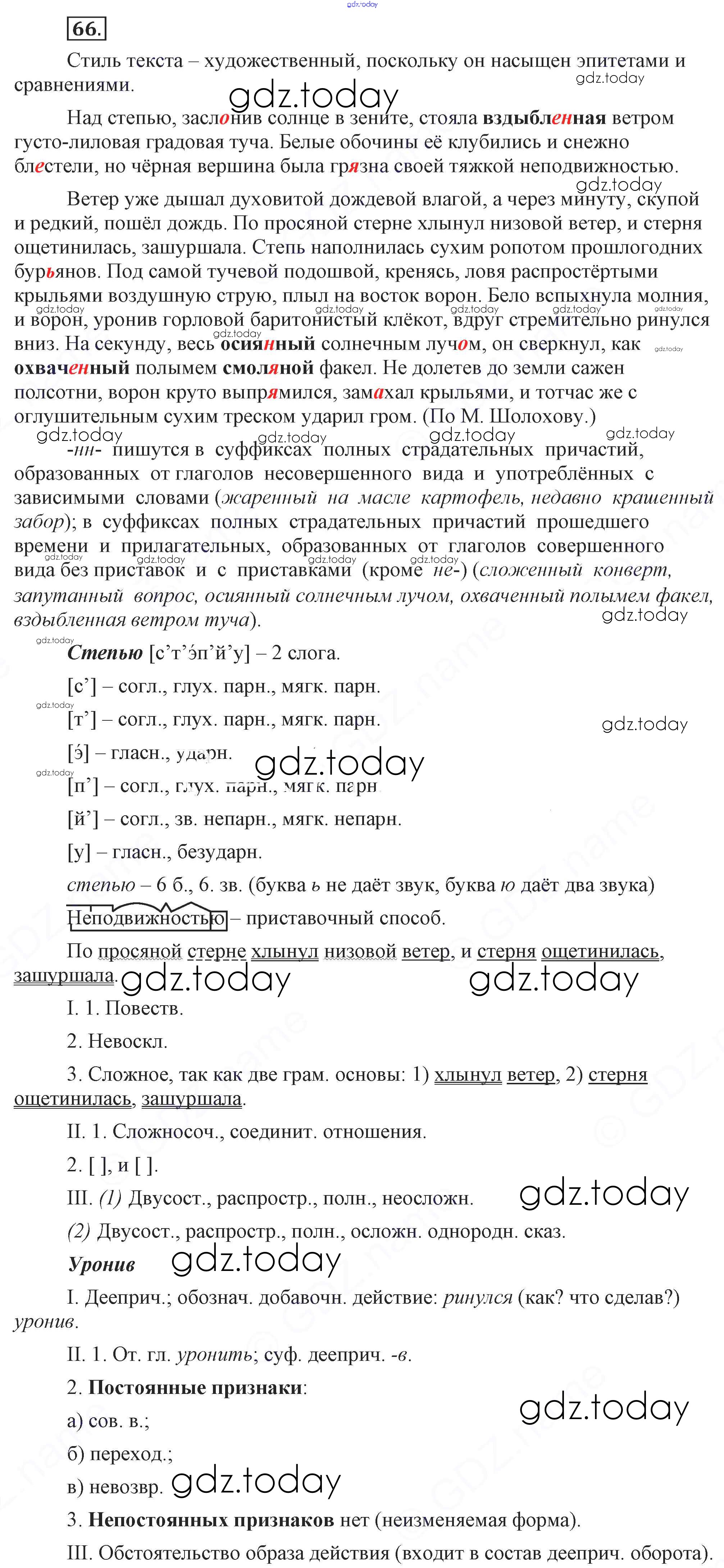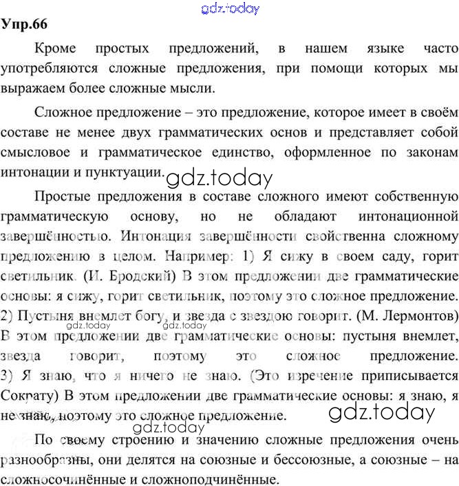 На страницах сайта gdz.today вы найдете учебный и вспомогательный материал, направленный на улучшения знаний школьной программы. ГДЗ - онлайн мир знаний Решение. Упражнения 66 Учебнику по Русскому языку для 9 класса Бархударов, Крючков Просвещение, Просвещение 2011, 2019