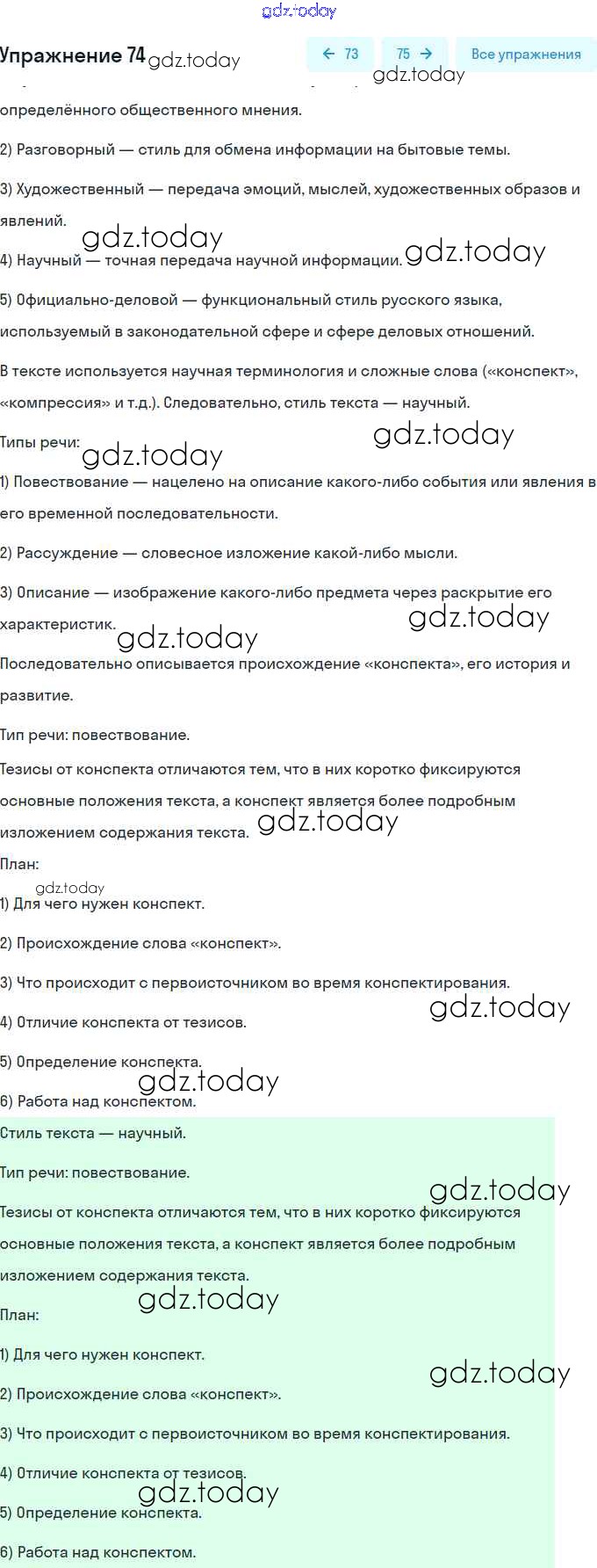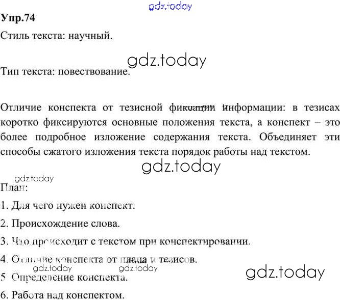 На страницах сайта gdz.today вы найдете учебный и вспомогательный материал, направленный на улучшения знаний школьной программы. ГДЗ - онлайн мир знаний Решение. Упражнения 74 Учебнику по Русскому языку для 9 класса Бархударов, Крючков Просвещение, Просвещение 2011, 2019