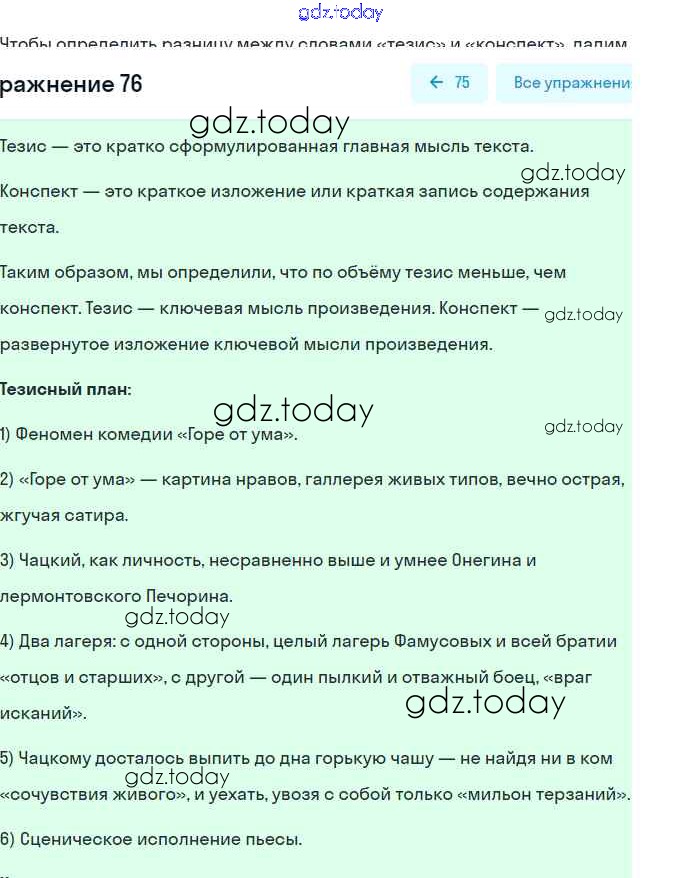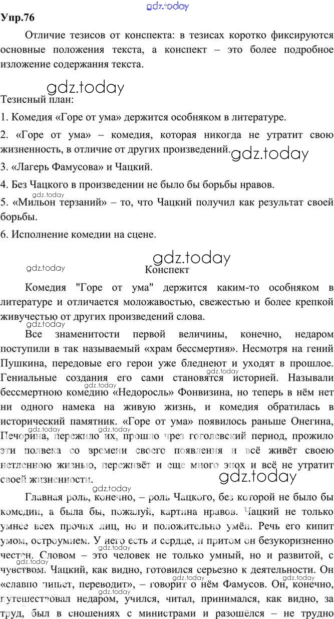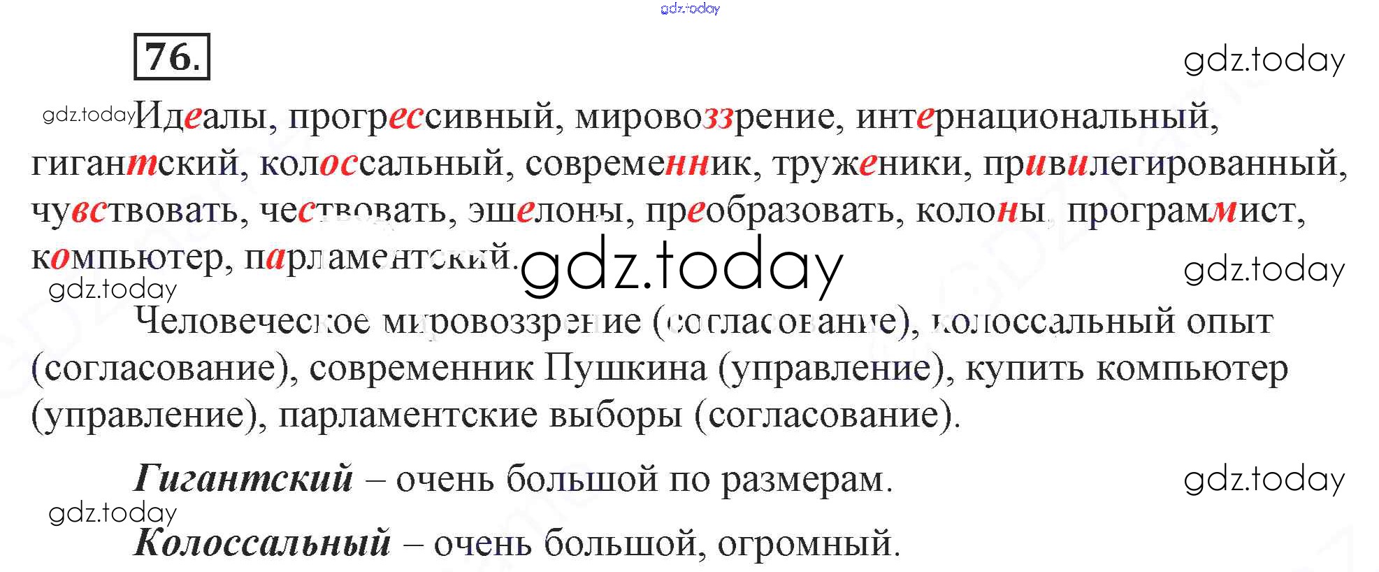 На страницах сайта gdz.today вы найдете учебный и вспомогательный материал, направленный на улучшения знаний школьной программы. ГДЗ - онлайн мир знаний Решение. Упражнения 76 Учебнику по Русскому языку для 9 класса Бархударов, Крючков Просвещение, Просвещение 2011, 2019