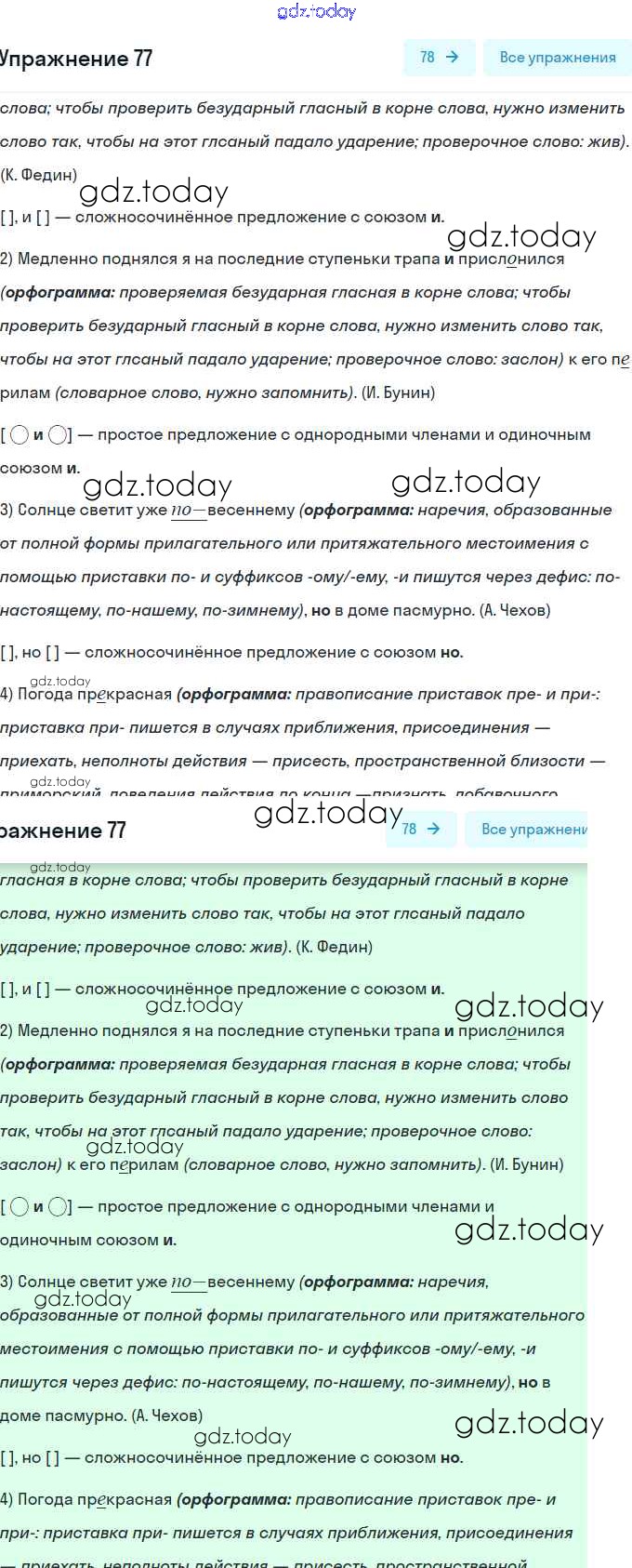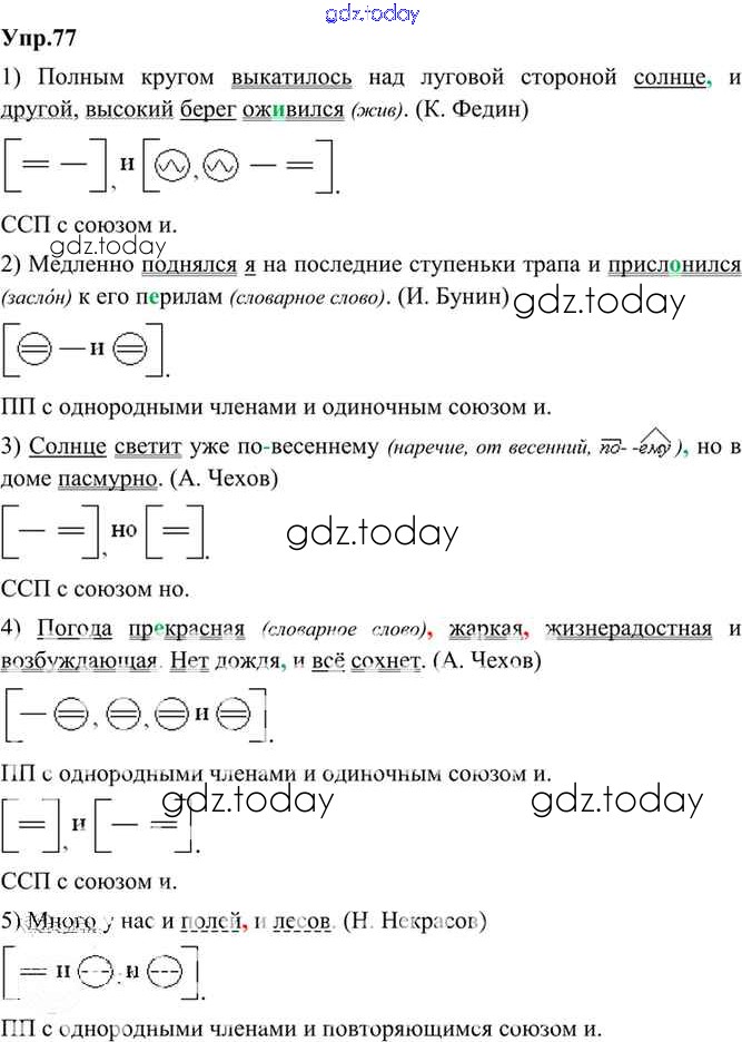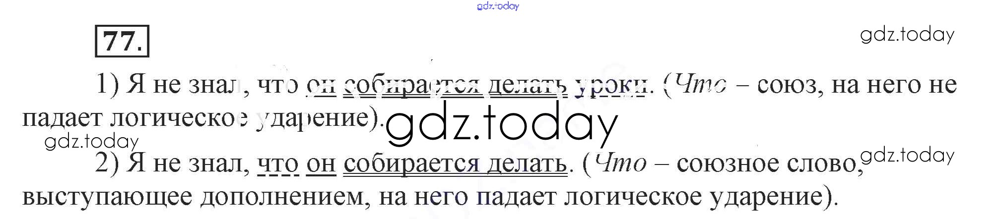 На страницах сайта gdz.today вы найдете учебный и вспомогательный материал, направленный на улучшения знаний школьной программы. ГДЗ - онлайн мир знаний Решение. Упражнения 77 Учебнику по Русскому языку для 9 класса Бархударов, Крючков Просвещение, Просвещение 2011, 2019