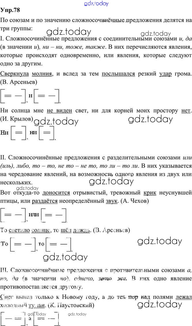 На страницах сайта gdz.today вы найдете учебный и вспомогательный материал, направленный на улучшения знаний школьной программы. ГДЗ - онлайн мир знаний Решение. Упражнения 78 Учебнику по Русскому языку для 9 класса Бархударов, Крючков Просвещение, Просвещение 2011, 2019