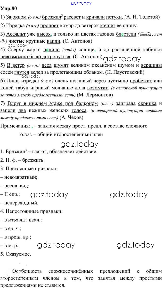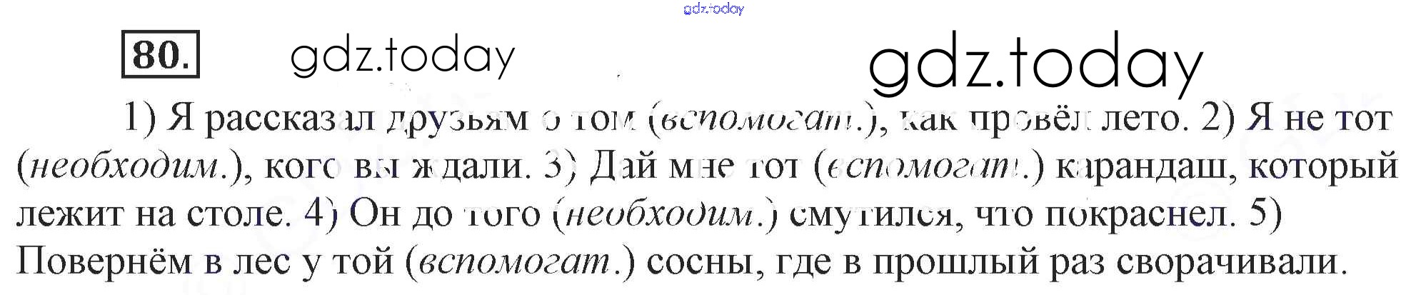 На страницах сайта gdz.today вы найдете учебный и вспомогательный материал, направленный на улучшения знаний школьной программы. ГДЗ - онлайн мир знаний Решение. Упражнения 80 Учебнику по Русскому языку для 9 класса Бархударов, Крючков Просвещение, Просвещение 2011, 2019