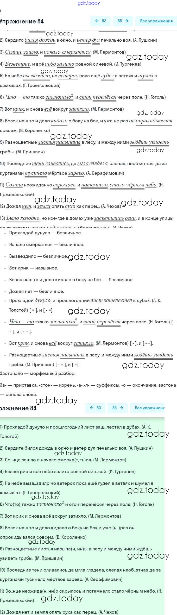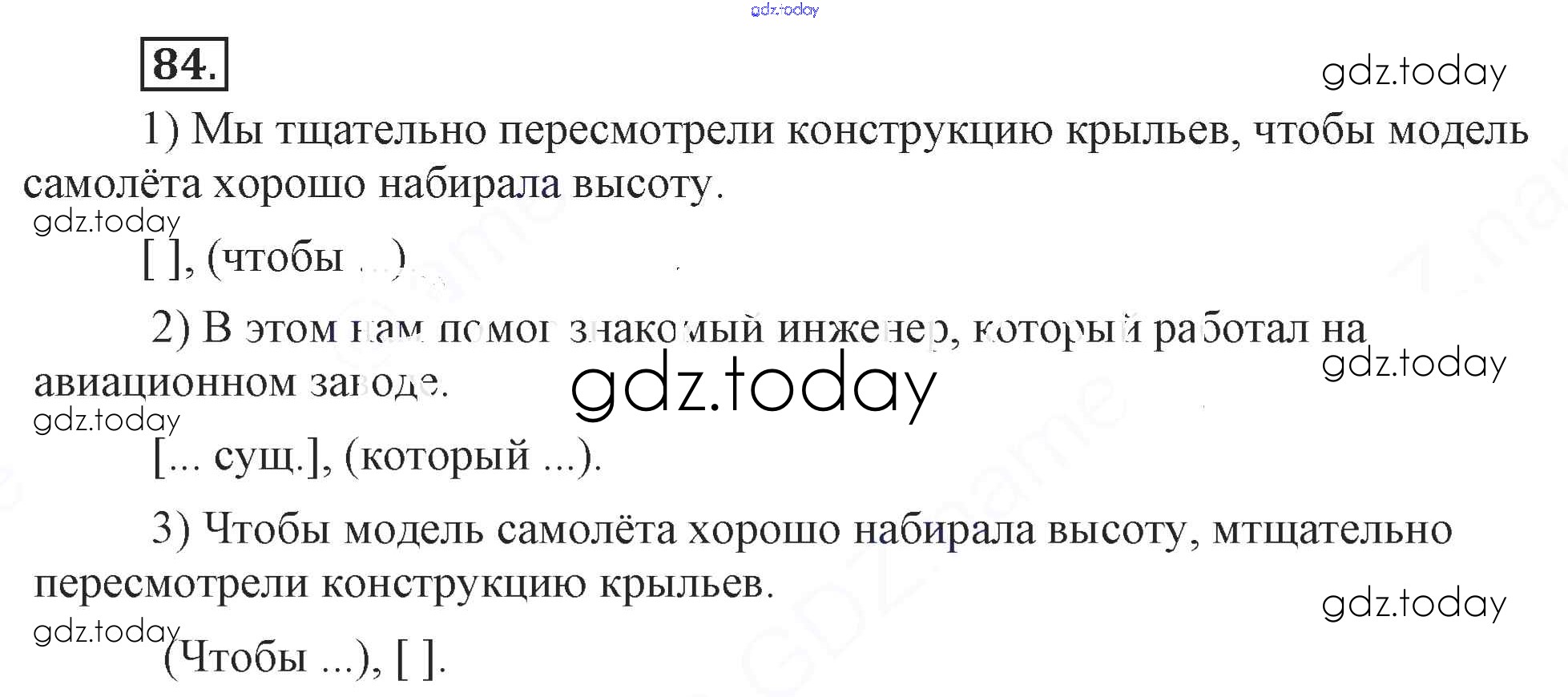 На страницах сайта gdz.today вы найдете учебный и вспомогательный материал, направленный на улучшения знаний школьной программы. ГДЗ - онлайн мир знаний Решение. Упражнения 84 Учебнику по Русскому языку для 9 класса Бархударов, Крючков Просвещение, Просвещение 2011, 2019