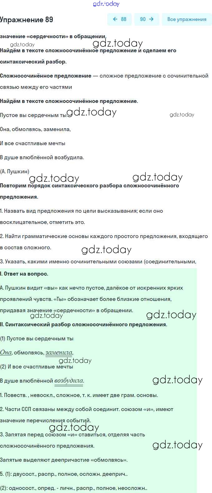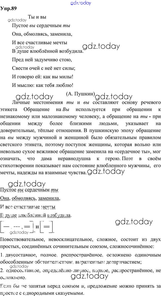 На страницах сайта gdz.today вы найдете учебный и вспомогательный материал, направленный на улучшения знаний школьной программы. ГДЗ - онлайн мир знаний Решение. Упражнения 89 Учебнику по Русскому языку для 9 класса Бархударов, Крючков Просвещение, Просвещение 2011, 2019