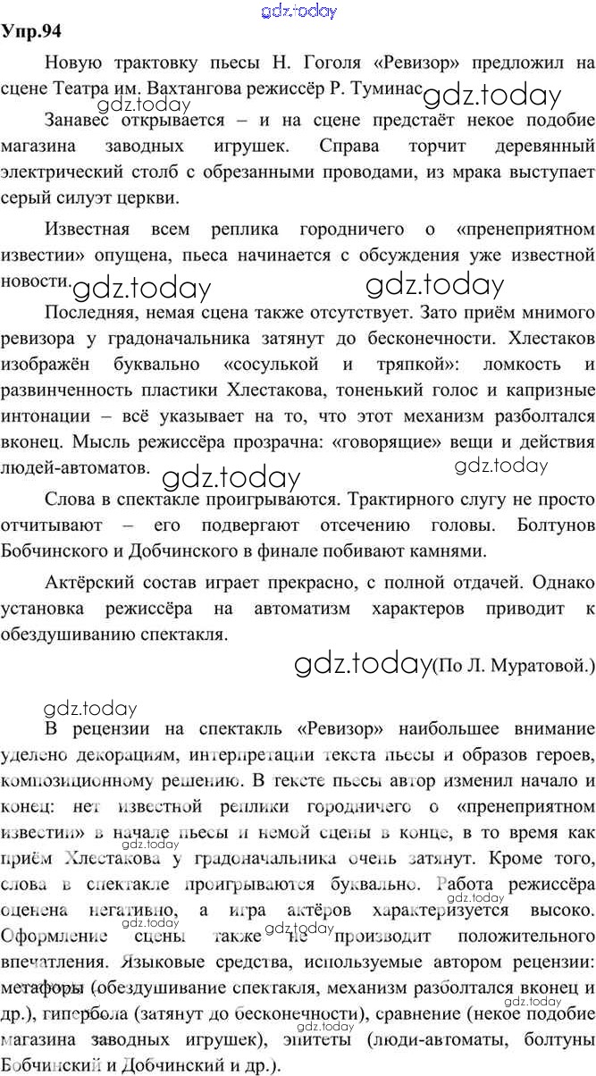 На страницах сайта gdz.today вы найдете учебный и вспомогательный материал, направленный на улучшения знаний школьной программы. ГДЗ - онлайн мир знаний Решение. Упражнения 94 Учебнику по Русскому языку для 9 класса Бархударов, Крючков Просвещение, Просвещение 2011, 2019