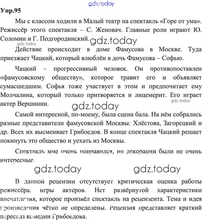 На страницах сайта gdz.today вы найдете учебный и вспомогательный материал, направленный на улучшения знаний школьной программы. ГДЗ - онлайн мир знаний Решение. Упражнения 95 Учебнику по Русскому языку для 9 класса Бархударов, Крючков Просвещение, Просвещение 2011, 2019