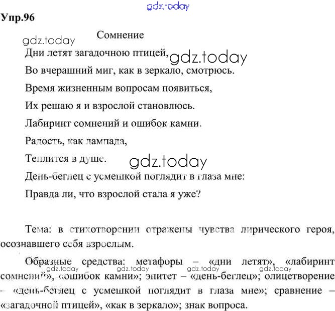 На страницах сайта gdz.today вы найдете учебный и вспомогательный материал, направленный на улучшения знаний школьной программы. ГДЗ - онлайн мир знаний Решение. Упражнения 96 Учебнику по Русскому языку для 9 класса Бархударов, Крючков Просвещение, Просвещение 2011, 2019