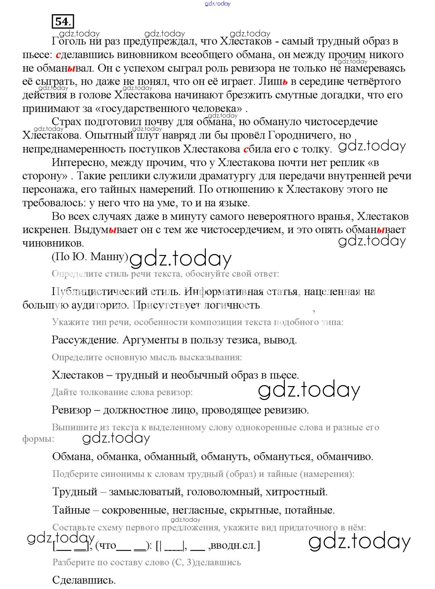 На страницах сайта gdz.today вы найдете учебный и вспомогательный материал, направленный на улучшения знаний школьной программы. ГДЗ - онлайн мир знаний Упражнения Решение к части 2 54 Рабочей тетради по Русскому языку для 9 класса Богданова Генеза 2017