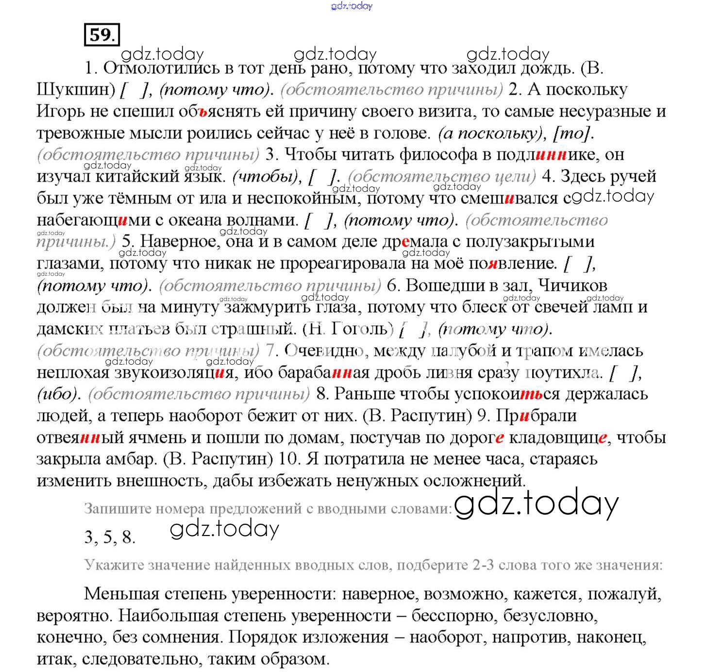 На страницах сайта gdz.today вы найдете учебный и вспомогательный материал, направленный на улучшения знаний школьной программы. ГДЗ - онлайн мир знаний Упражнения Решение к части 2 59 Рабочей тетради по Русскому языку для 9 класса Богданова Генеза 2017