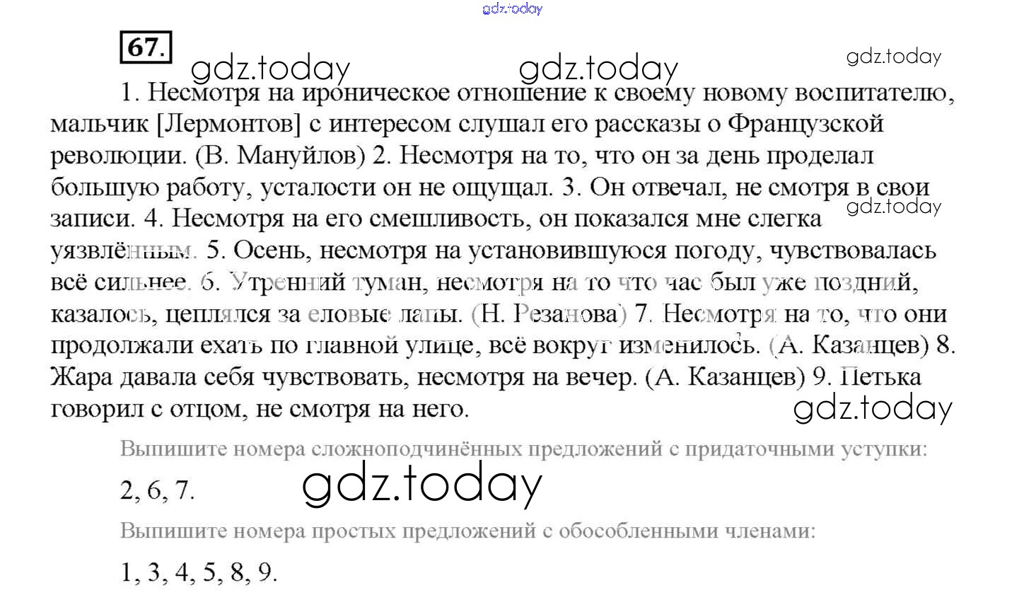 На страницах сайта gdz.today вы найдете учебный и вспомогательный материал, направленный на улучшения знаний школьной программы. ГДЗ - онлайн мир знаний Упражнения Решение к части 2 67 Рабочей тетради по Русскому языку для 9 класса Богданова Генеза 2017