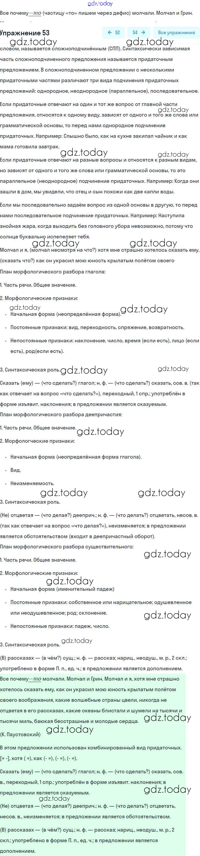 На страницах сайта gdz.today вы найдете учебный и вспомогательный материал, направленный на улучшения знаний школьной программы. ГДЗ - онлайн мир знаний Упражнения 53 Рабочей тетради по Русскому языку для 9 класса Ефремова Просвещение УМК 2017