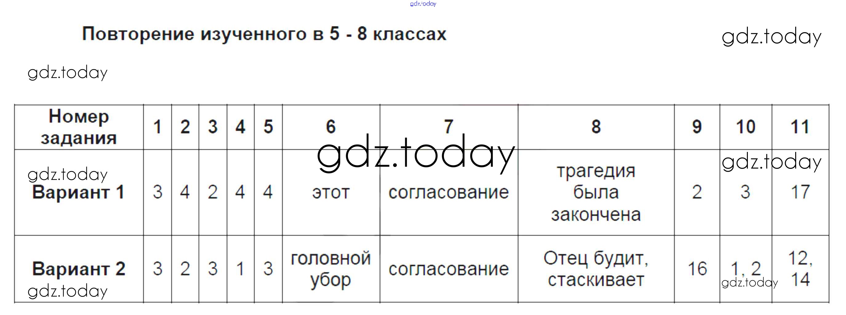 Ответы к Повторение (решение) 1 Тестам по Русскому языку для 9 класса Груздева Экзамен УМК 2015