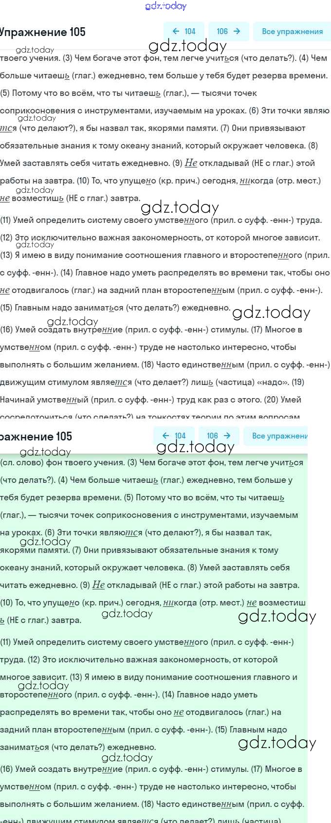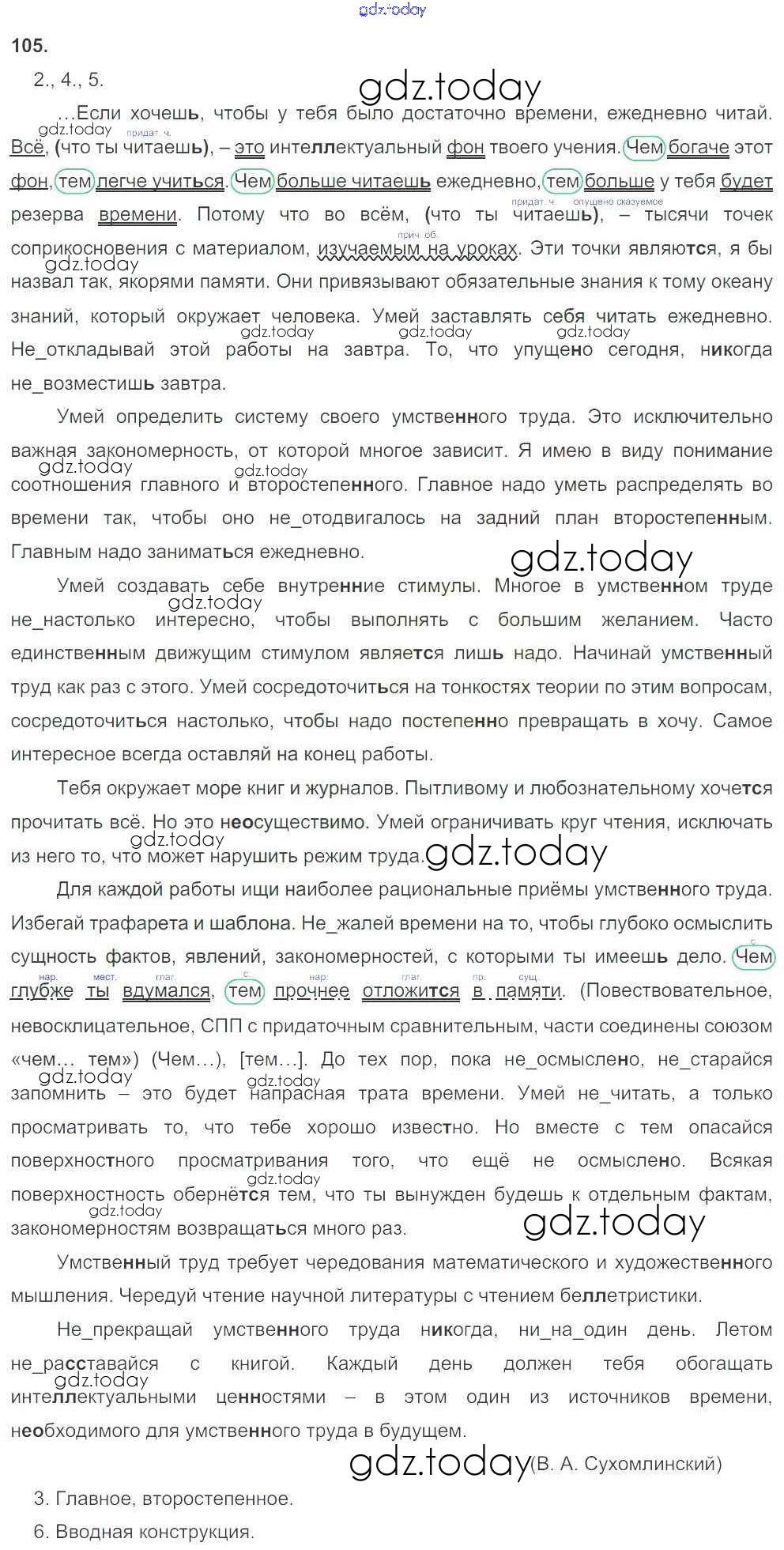 На страницах сайта gdz.today вы найдете учебный и вспомогательный материал, направленный на улучшения знаний школьной программы. ГДЗ - онлайн мир знаний Решение. Упражнения 105 Рабочей тетради по Русскому языку для 9 класса Литвинова Дрофа Вертикаль 2016