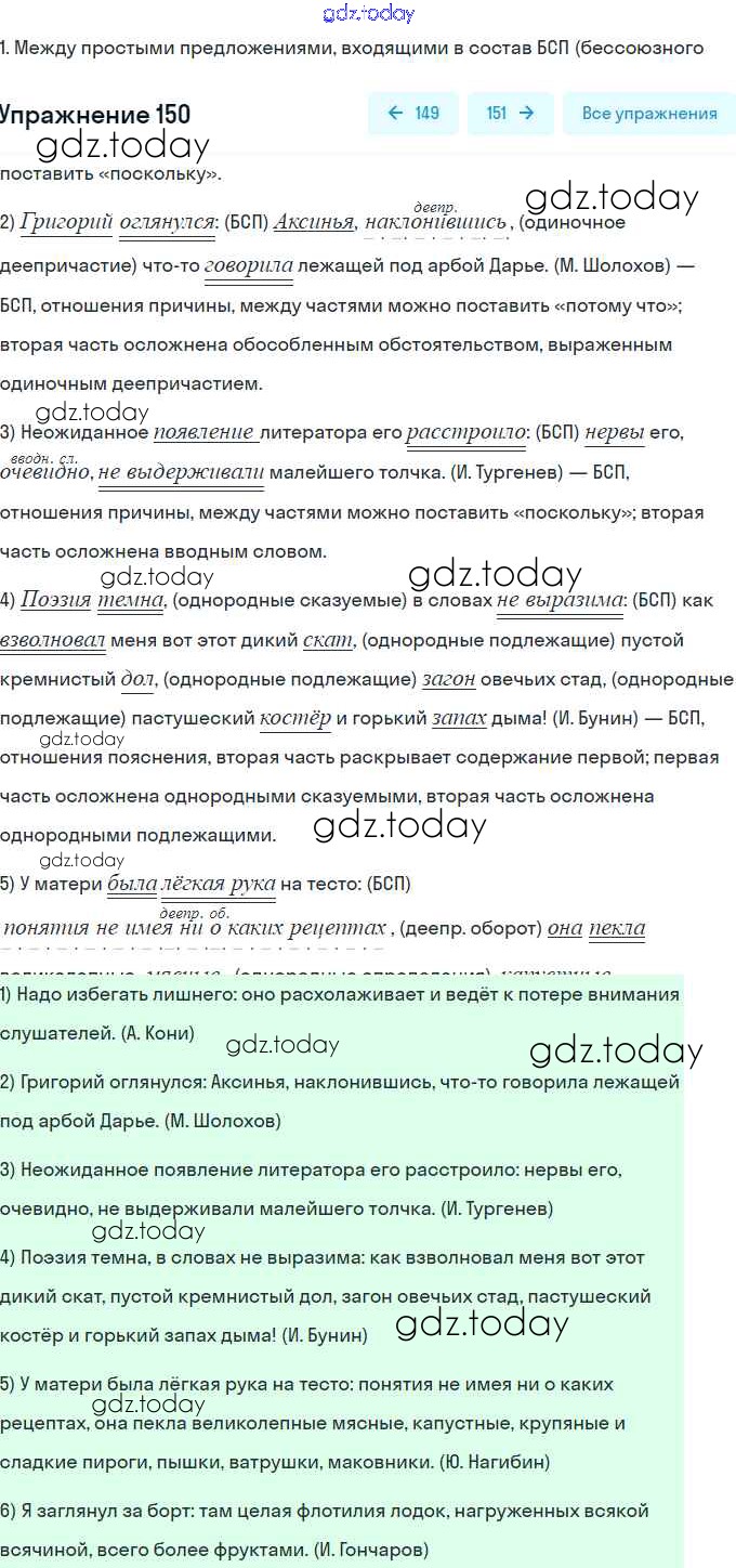 На страницах сайта gdz.today вы найдете учебный и вспомогательный материал, направленный на улучшения знаний школьной программы. ГДЗ - онлайн мир знаний Решение. Упражнения 150 Рабочей тетради по Русскому языку для 9 класса Литвинова Дрофа Вертикаль 2016