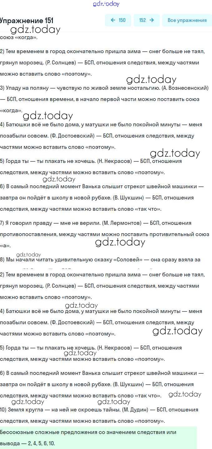 Ответы к Решение. Упражнения 151 Рабочей тетради по Русскому языку для 9 класса Литвинова Дрофа Вертикаль 2016