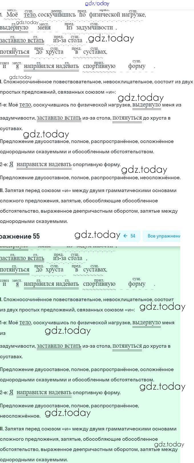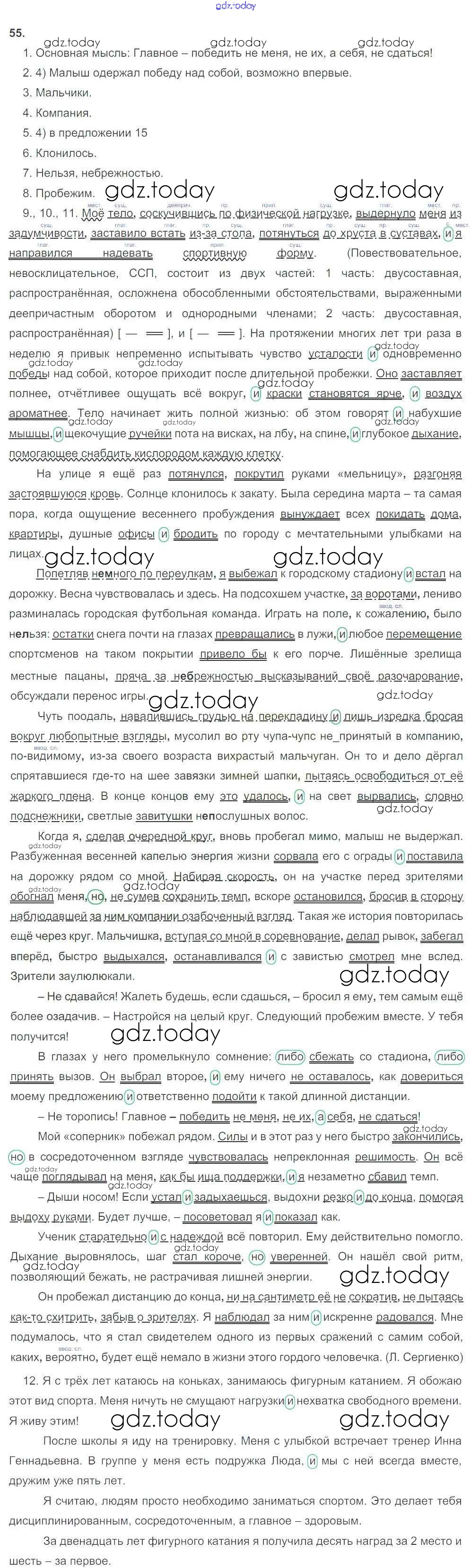 На страницах сайта gdz.today вы найдете учебный и вспомогательный материал, направленный на улучшения знаний школьной программы. ГДЗ - онлайн мир знаний Решение. Упражнения 55 Рабочей тетради по Русскому языку для 9 класса Литвинова Дрофа Вертикаль 2016