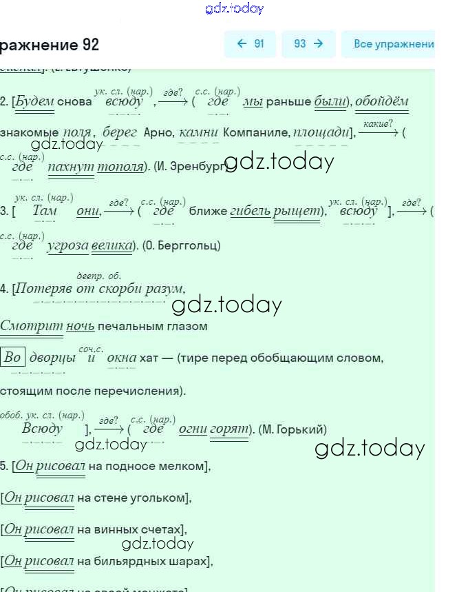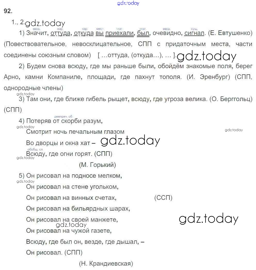 На страницах сайта gdz.today вы найдете учебный и вспомогательный материал, направленный на улучшения знаний школьной программы. ГДЗ - онлайн мир знаний Решение. Упражнения 92 Рабочей тетради по Русскому языку для 9 класса Литвинова Дрофа Вертикаль 2016