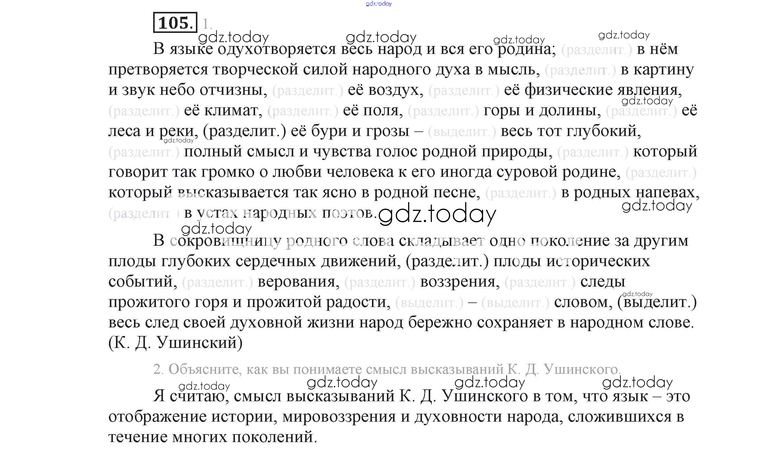 На страницах сайта gdz.today вы найдете учебный и вспомогательный материал, направленный на улучшения знаний школьной программы. ГДЗ - онлайн мир знаний Решение к упражнениям 105 Учебнику по Русскому языку для 9 класса Львова, Львов Мнемозина 2016