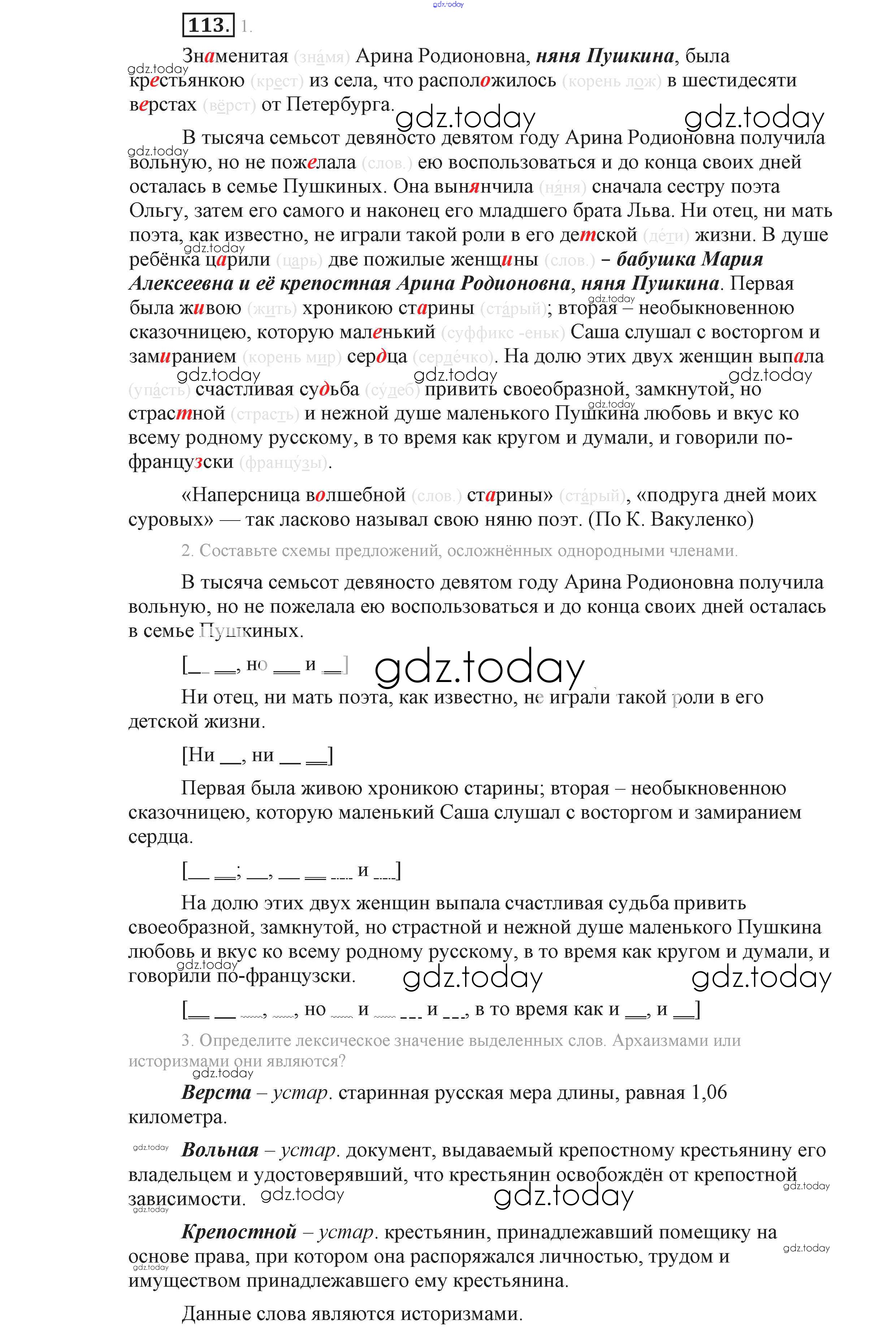 Ответы к Решение к упражнениям 113 Учебнику по Русскому языку для 9 класса Львова, Львов Мнемозина 2016