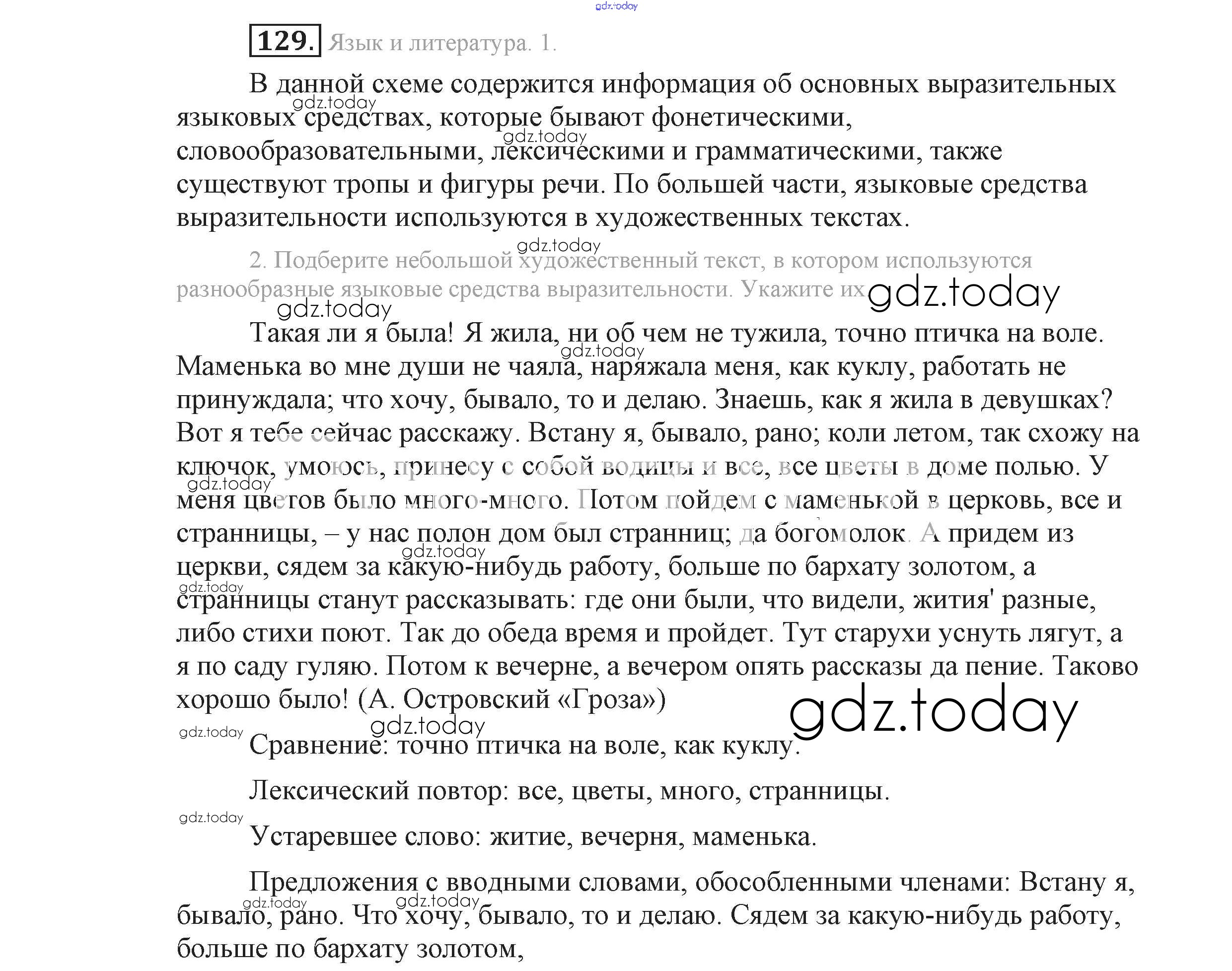Ответы к Решение к упражнениям 129 Учебнику по Русскому языку для 9 класса Львова, Львов Мнемозина 2016