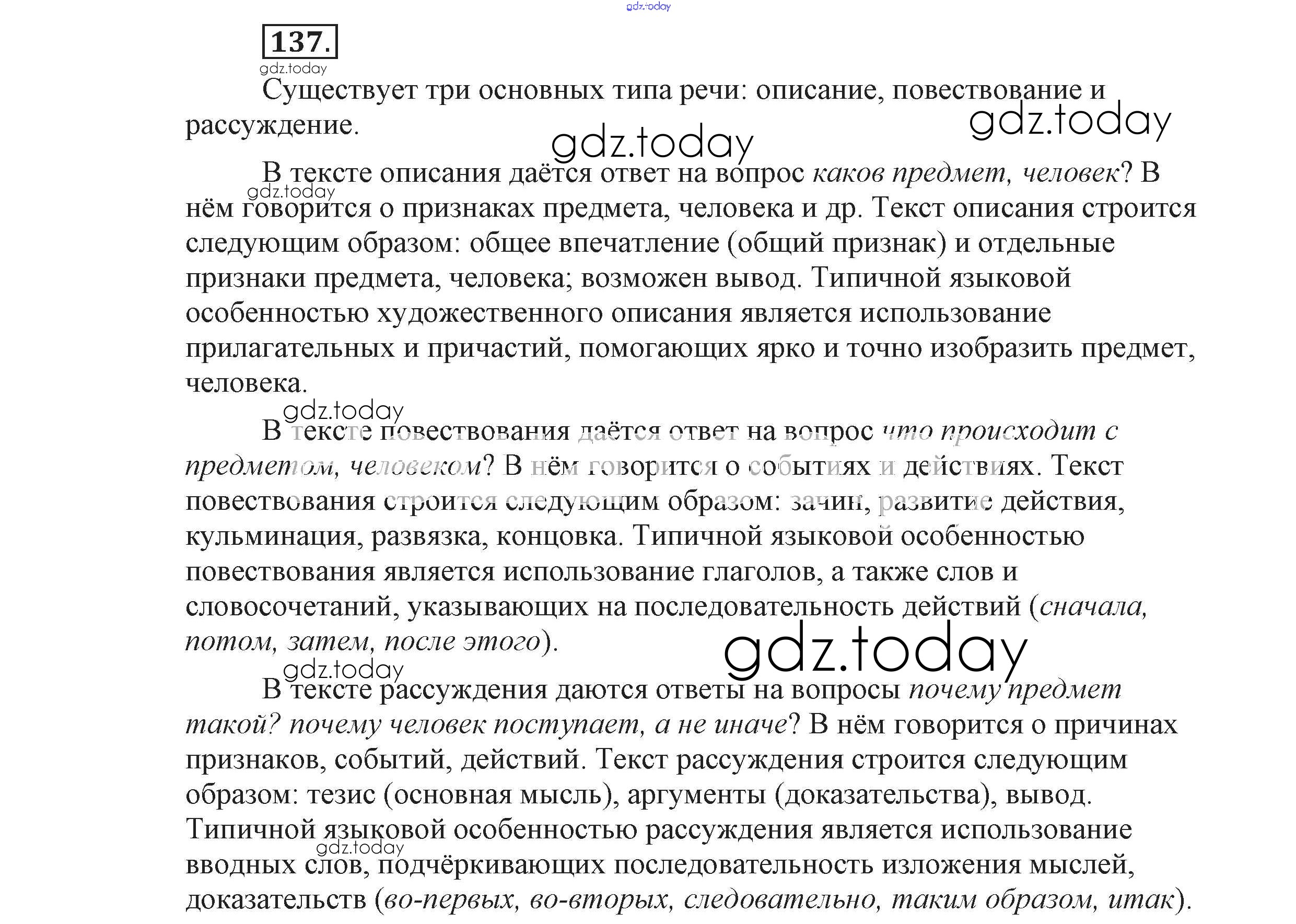 На страницах сайта gdz.today вы найдете учебный и вспомогательный материал, направленный на улучшения знаний школьной программы. ГДЗ - онлайн мир знаний Решение к упражнениям 137 Учебнику по Русскому языку для 9 класса Львова, Львов Мнемозина 2016