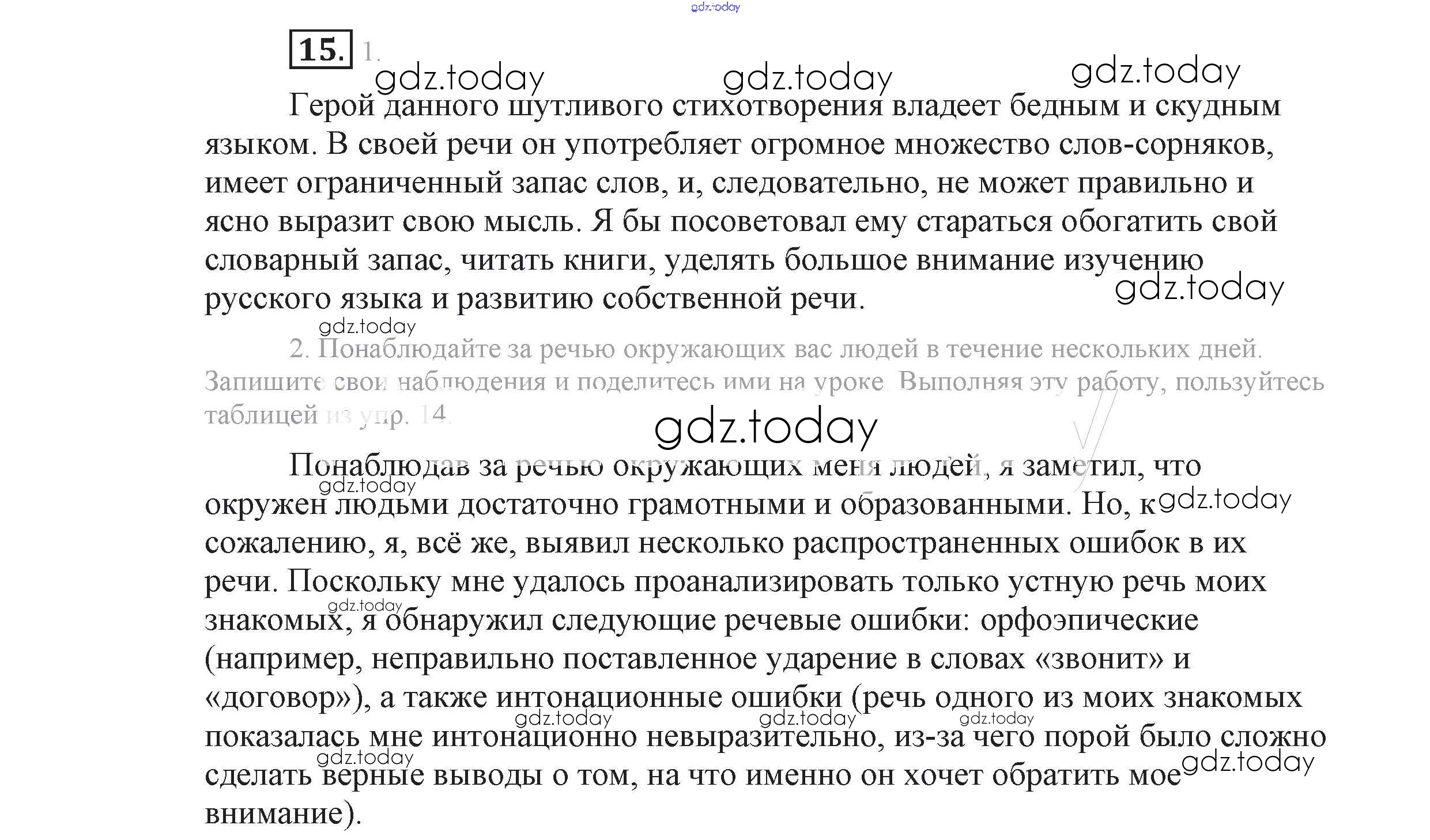 На страницах сайта gdz.today вы найдете учебный и вспомогательный материал, направленный на улучшения знаний школьной программы. ГДЗ - онлайн мир знаний Решение к упражнениям 15 Учебнику по Русскому языку для 9 класса Львова, Львов Мнемозина 2016