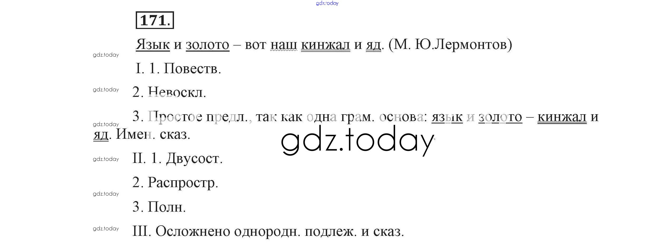 На страницах сайта gdz.today вы найдете учебный и вспомогательный материал, направленный на улучшения знаний школьной программы. ГДЗ - онлайн мир знаний Решение к упражнениям 171 Учебнику по Русскому языку для 9 класса Львова, Львов Мнемозина 2016