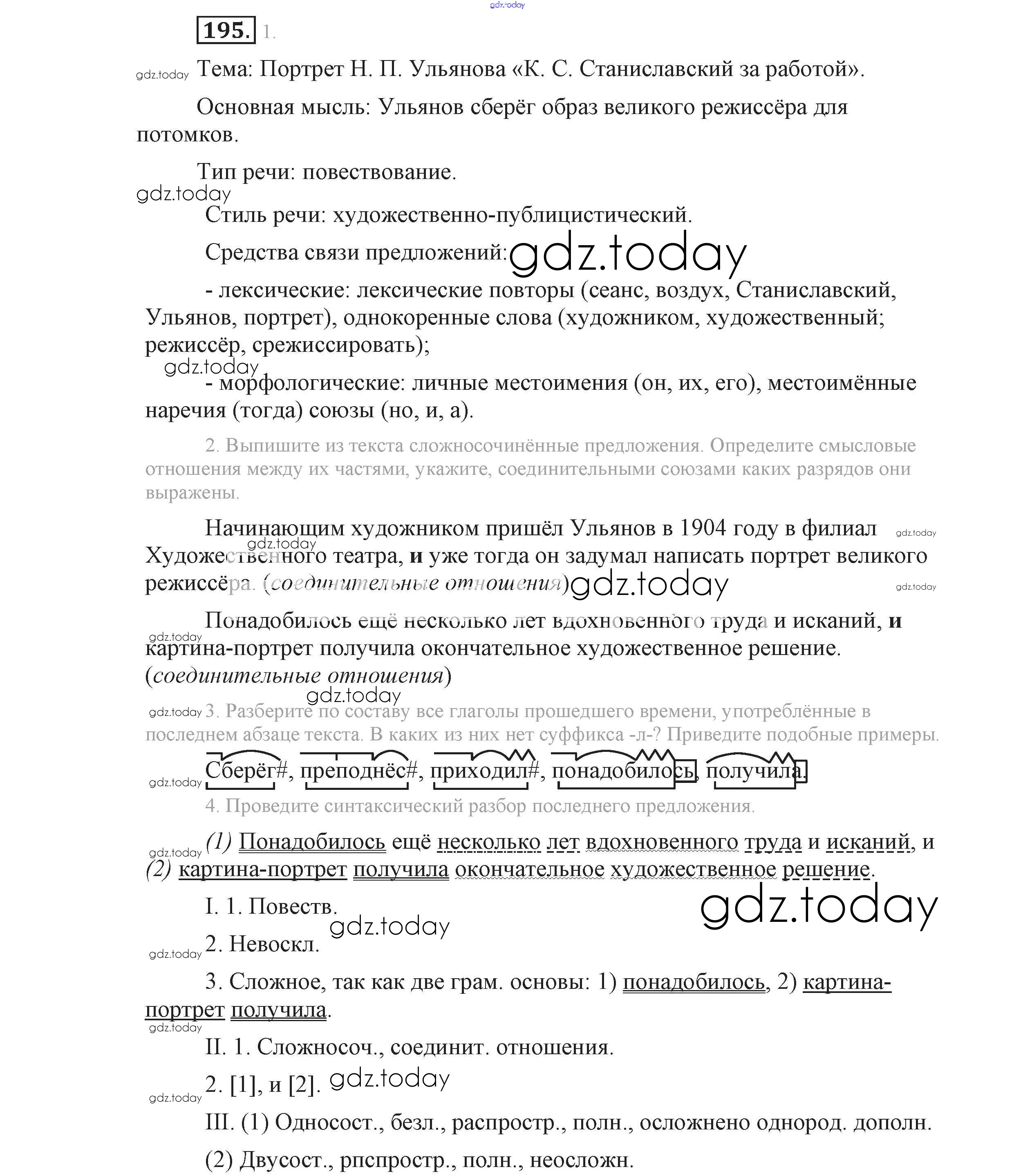 На страницах сайта gdz.today вы найдете учебный и вспомогательный материал, направленный на улучшения знаний школьной программы. ГДЗ - онлайн мир знаний Решение к упражнениям 195 Учебнику по Русскому языку для 9 класса Львова, Львов Мнемозина 2016