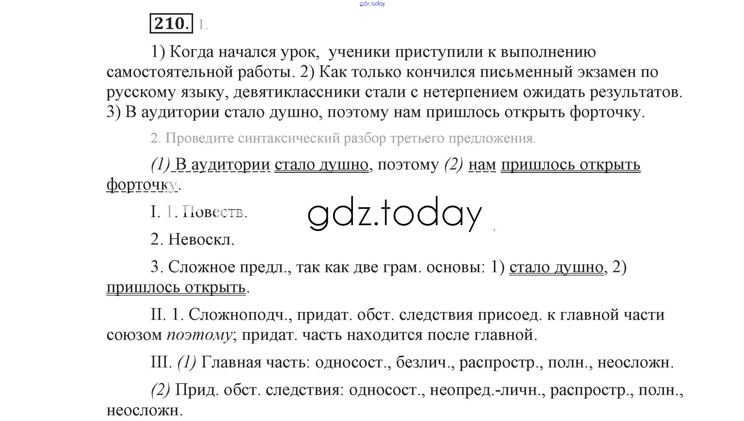 На страницах сайта gdz.today вы найдете учебный и вспомогательный материал, направленный на улучшения знаний школьной программы. ГДЗ - онлайн мир знаний Решение к упражнениям 210 Учебнику по Русскому языку для 9 класса Львова, Львов Мнемозина 2016