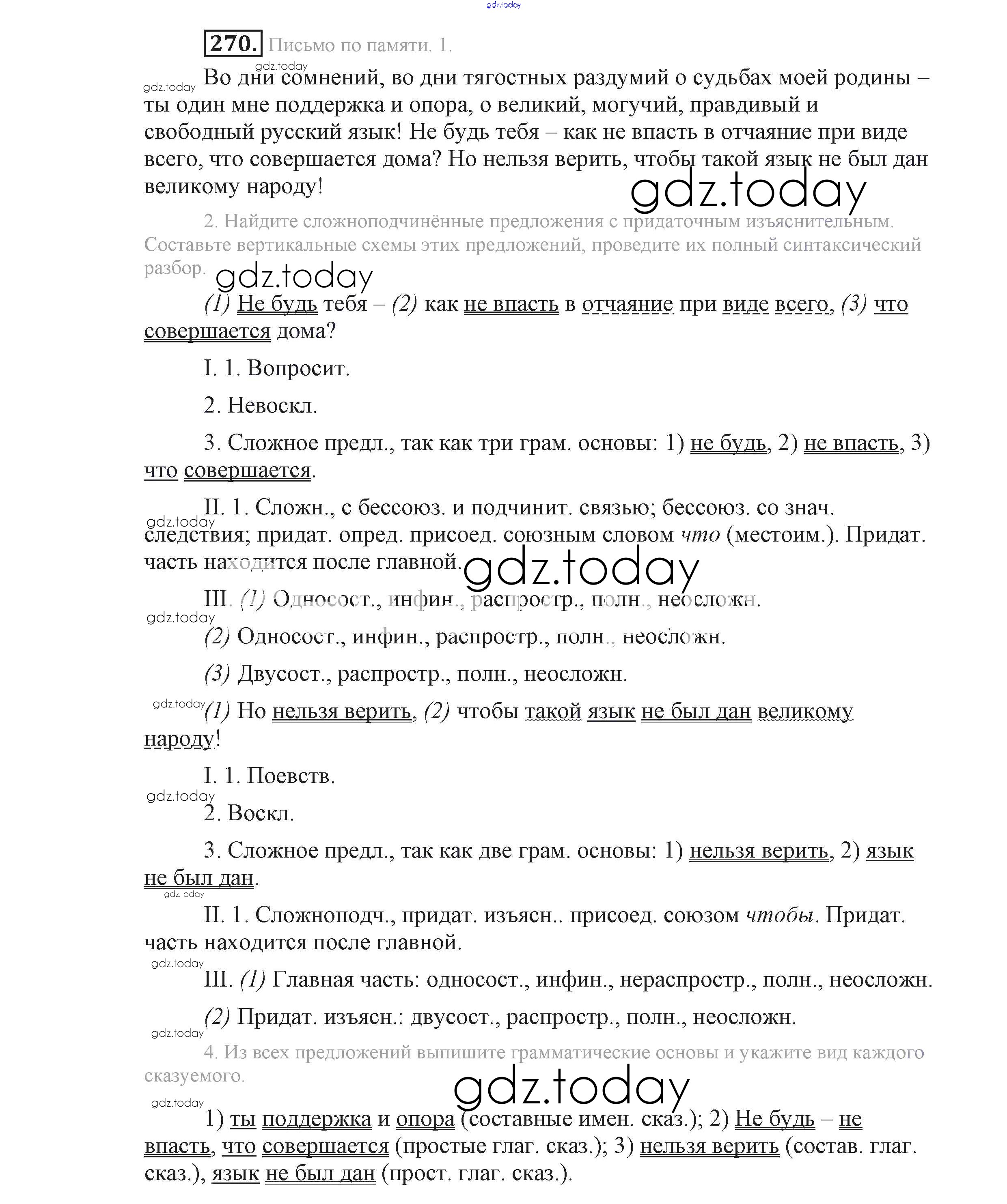 На страницах сайта gdz.today вы найдете учебный и вспомогательный материал, направленный на улучшения знаний школьной программы. ГДЗ - онлайн мир знаний Решение к упражнениям 270 Учебнику по Русскому языку для 9 класса Львова, Львов Мнемозина 2016