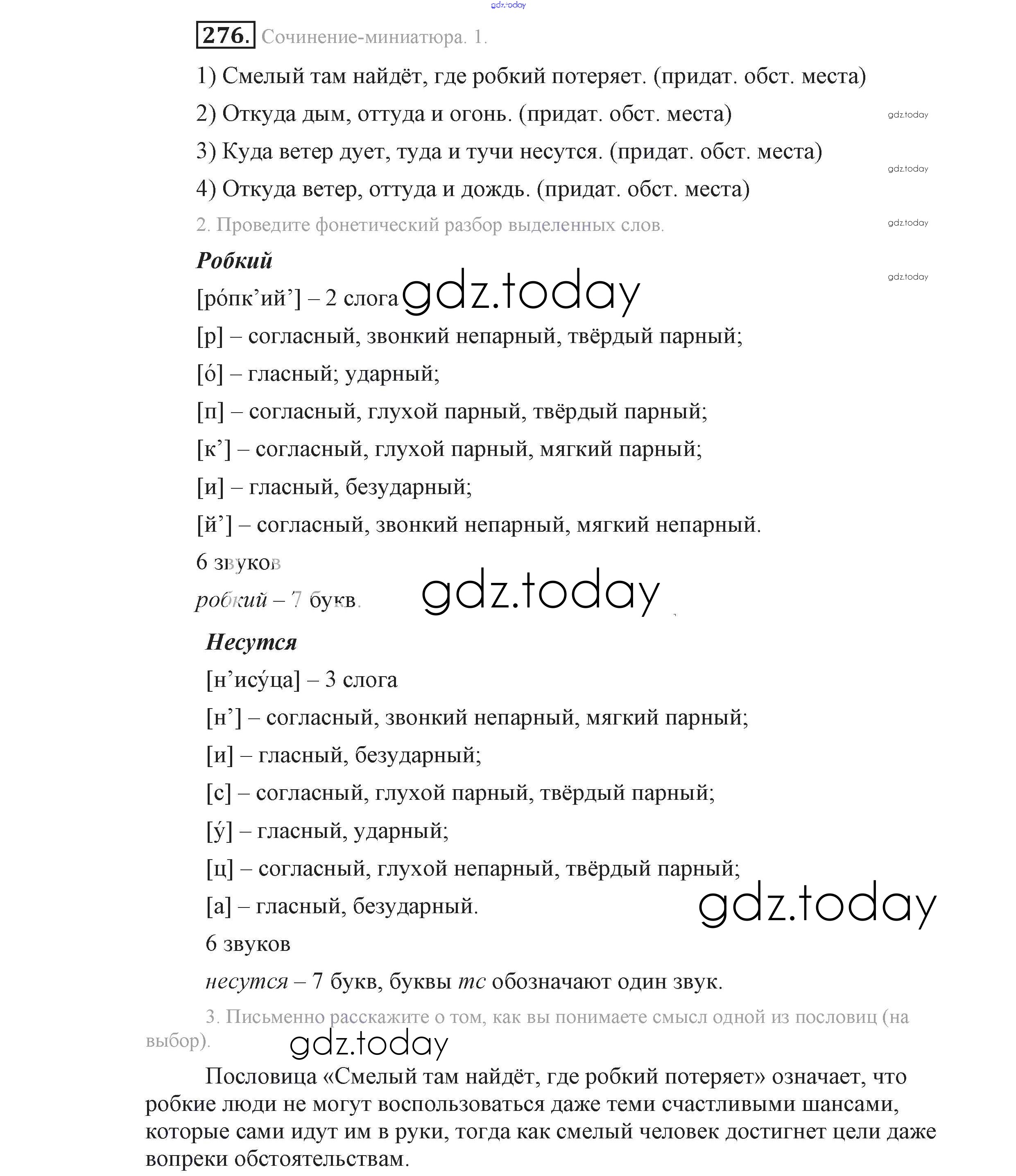 На страницах сайта gdz.today вы найдете учебный и вспомогательный материал, направленный на улучшения знаний школьной программы. ГДЗ - онлайн мир знаний Решение к упражнениям 276 Учебнику по Русскому языку для 9 класса Львова, Львов Мнемозина 2016