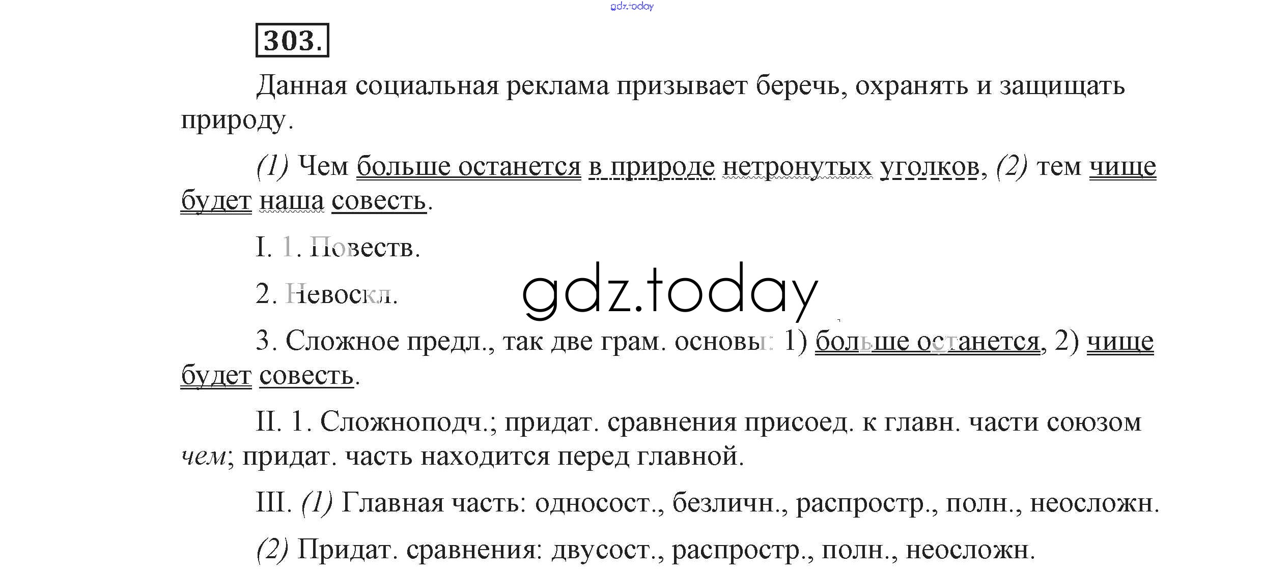 На страницах сайта gdz.today вы найдете учебный и вспомогательный материал, направленный на улучшения знаний школьной программы. ГДЗ - онлайн мир знаний Решение к упражнениям 303 Учебнику по Русскому языку для 9 класса Львова, Львов Мнемозина 2016