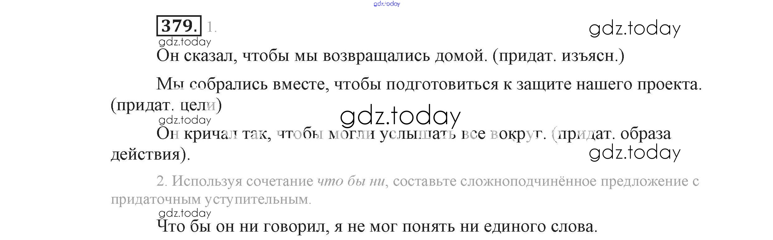На страницах сайта gdz.today вы найдете учебный и вспомогательный материал, направленный на улучшения знаний школьной программы. ГДЗ - онлайн мир знаний Решение к упражнениям 379 Учебнику по Русскому языку для 9 класса Львова, Львов Мнемозина 2016