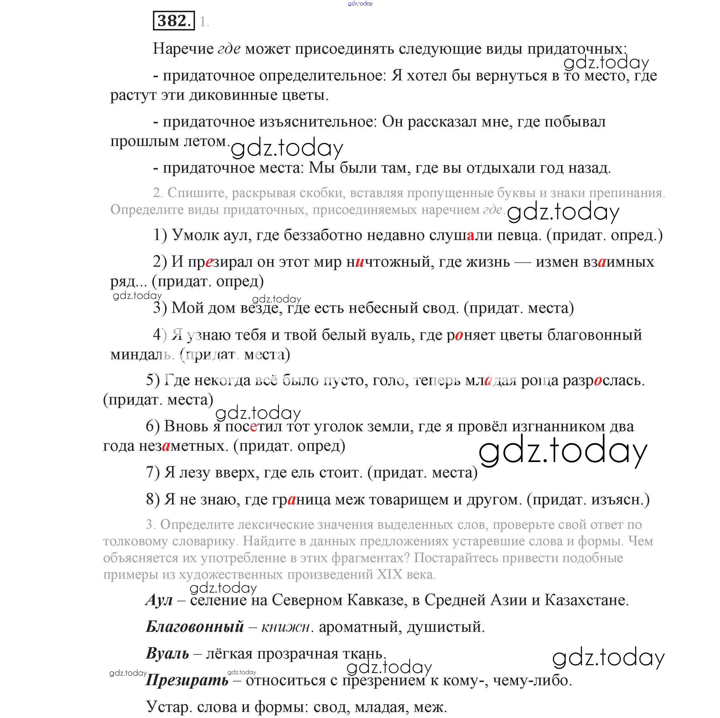 На страницах сайта gdz.today вы найдете учебный и вспомогательный материал, направленный на улучшения знаний школьной программы. ГДЗ - онлайн мир знаний Решение к упражнениям 382 Учебнику по Русскому языку для 9 класса Львова, Львов Мнемозина 2016