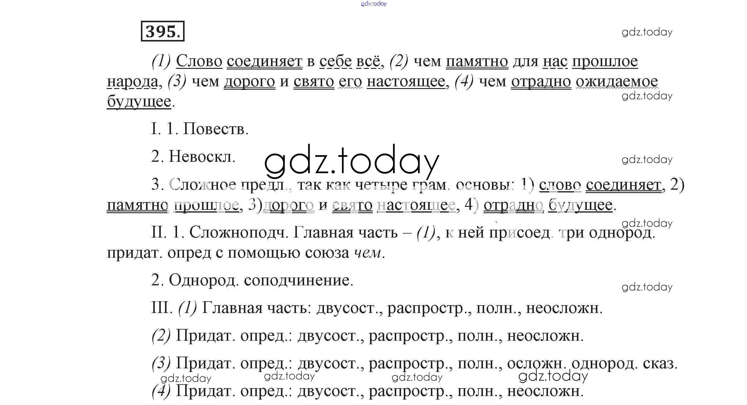 На страницах сайта gdz.today вы найдете учебный и вспомогательный материал, направленный на улучшения знаний школьной программы. ГДЗ - онлайн мир знаний Решение к упражнениям 395 Учебнику по Русскому языку для 9 класса Львова, Львов Мнемозина 2016