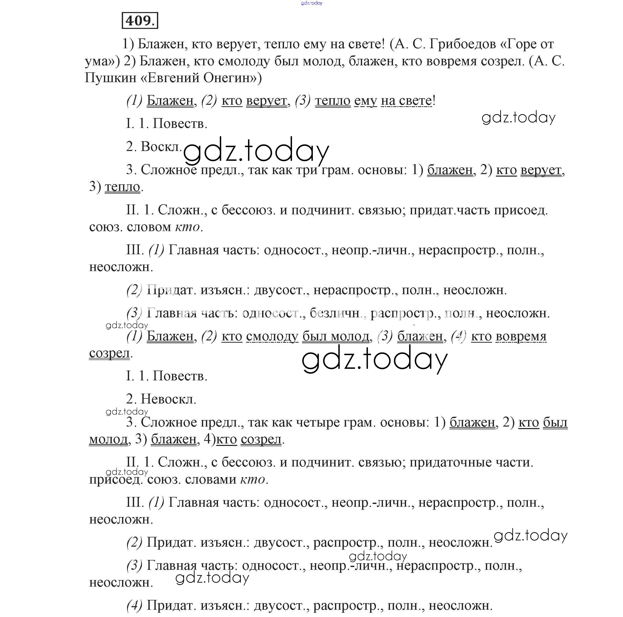 На страницах сайта gdz.today вы найдете учебный и вспомогательный материал, направленный на улучшения знаний школьной программы. ГДЗ - онлайн мир знаний Решение к упражнениям 409 Учебнику по Русскому языку для 9 класса Львова, Львов Мнемозина 2016