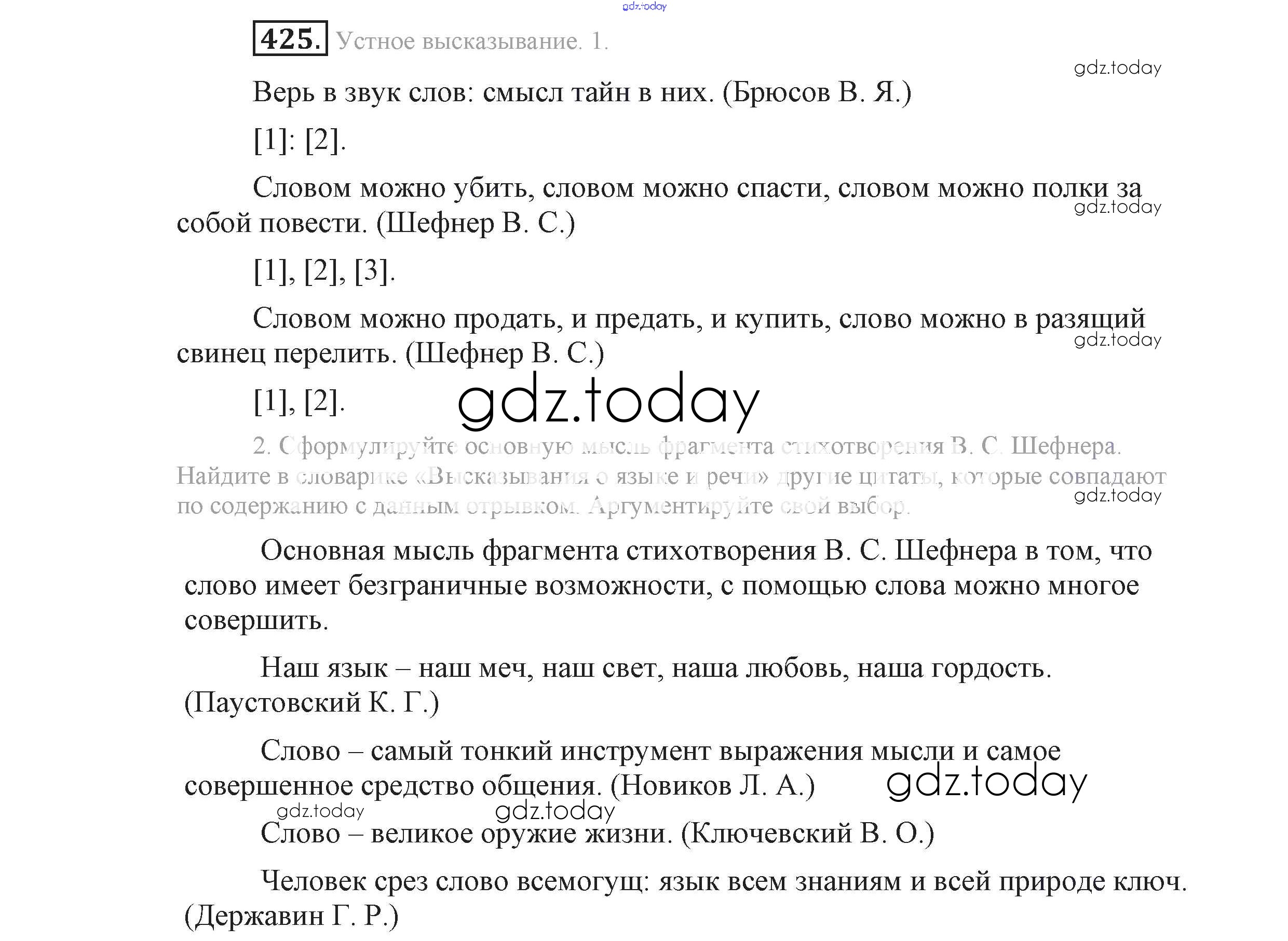 На страницах сайта gdz.today вы найдете учебный и вспомогательный материал, направленный на улучшения знаний школьной программы. ГДЗ - онлайн мир знаний Решение к упражнениям 425 Учебнику по Русскому языку для 9 класса Львова, Львов Мнемозина 2016