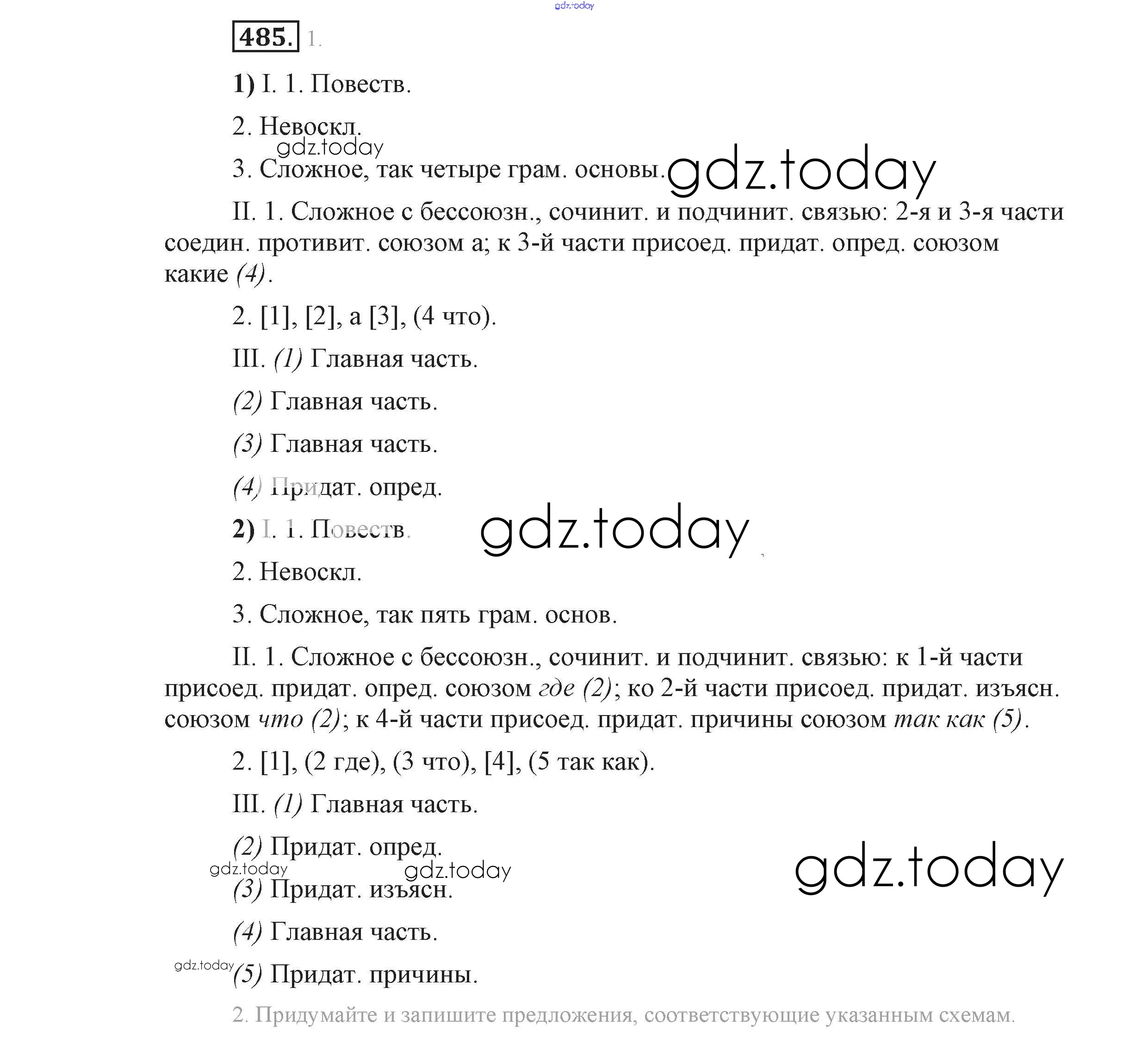 На страницах сайта gdz.today вы найдете учебный и вспомогательный материал, направленный на улучшения знаний школьной программы. ГДЗ - онлайн мир знаний Решение к упражнениям 485 Учебнику по Русскому языку для 9 класса Львова, Львов Мнемозина 2016